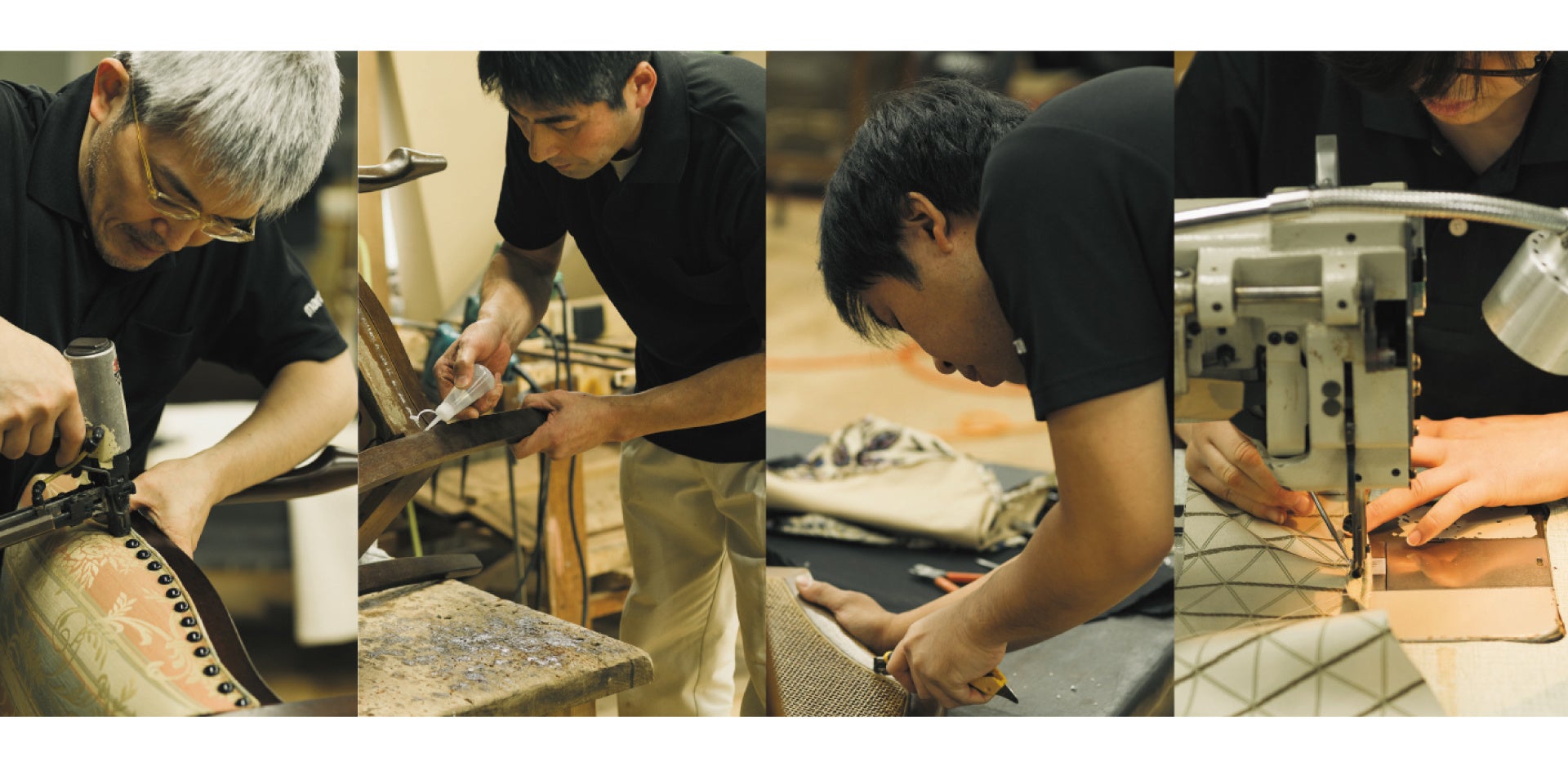 卓越した家具職人の技術や、著名なデザイナーとのコラボレーションシリーズを展開するマルニ木工。そのグループ会社で、木工家具の修理を専門に請け負うのがマルニファニシングです。オリジナルの図面をもとに、張り替えから塗装まで修理の全工程を一貫して自社工場で行う修理環境を整えており、過去のモデルでも安全かつ快適に使えるように修理が可能です。長い間ご家庭で使用されたマルニ木工の家具は「壊れてしまったので直したい」「思い出のある家具をまた使えるようにしたい」という声をいただくことが多く、様々な修理の要望に応えてきました。