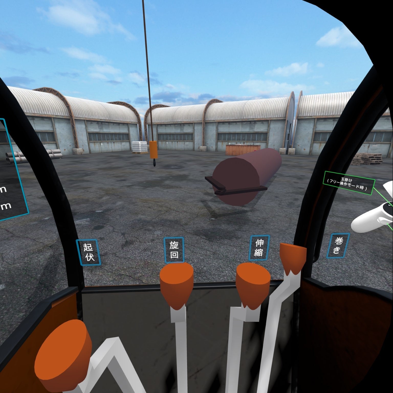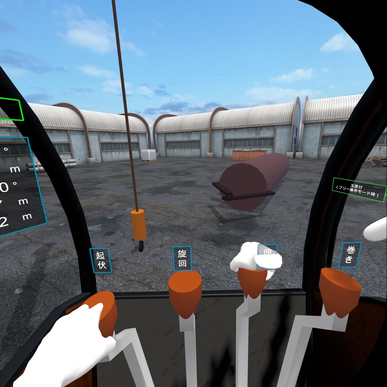 体験者はVR空間内の運転席にある4つのレバーを操作します。(それぞれ運転席旋回、ジブ起伏、ジブ伸縮、巻き上げ、計4本)