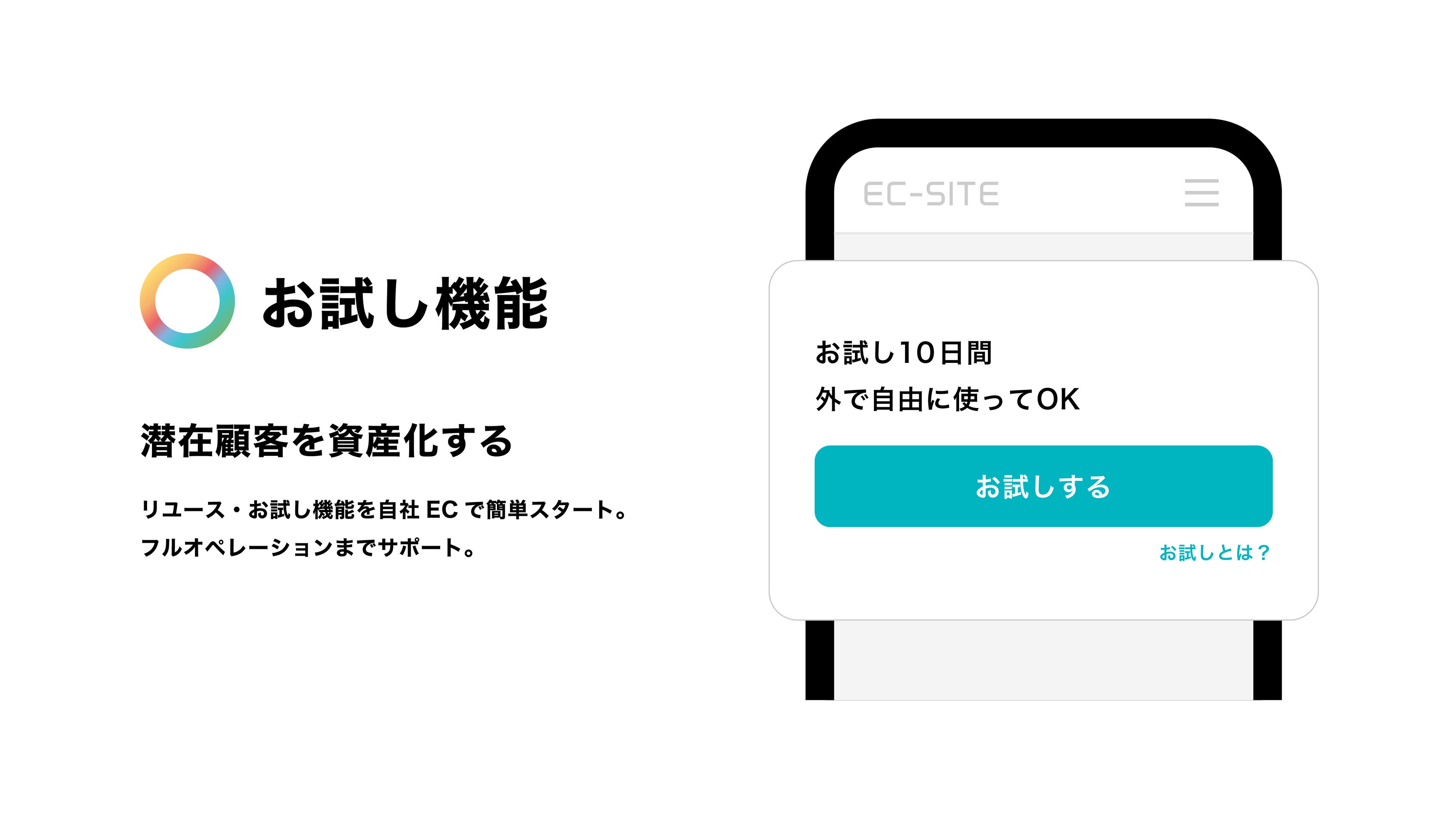 「購入するorしない」ではなく、「購入するorお試しする」という選択肢を、また、「新品購入」に加えて「リユース購入」という選択肢を提示することで、今まで購入に至らず離脱していた消費者にリーチすることができます。さらに、このデータは自社内に蓄積されていき、貴重な資産に変わります。