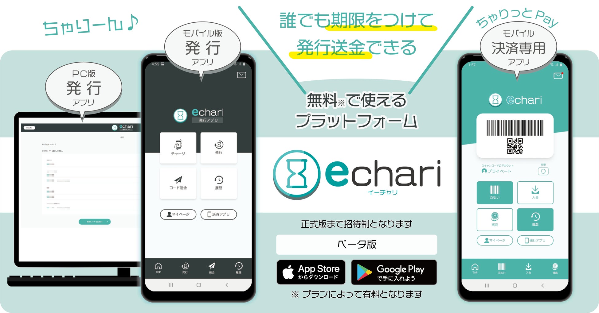 現金派もキャッシュレス派も利用してほしい! 誰でも期限をつけて発行送金できるキャッシュレスのプラットフォーム『 echari 』ベータ版をリリース