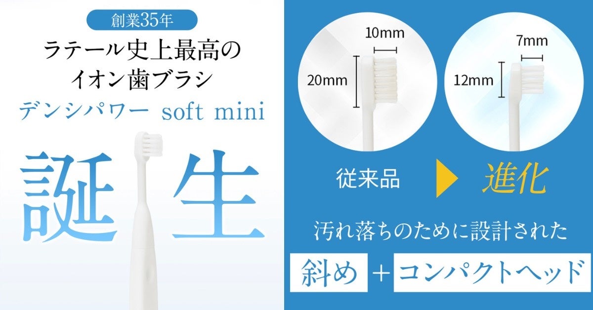 ラテール35年の集大成【デンシパワーsoft mini】(以下、ソフトミニ)とは電子イオン歯ブラシ【デンシパワー】は、1987年の創業時より一貫して販売してきたオーラルケア商品です。
