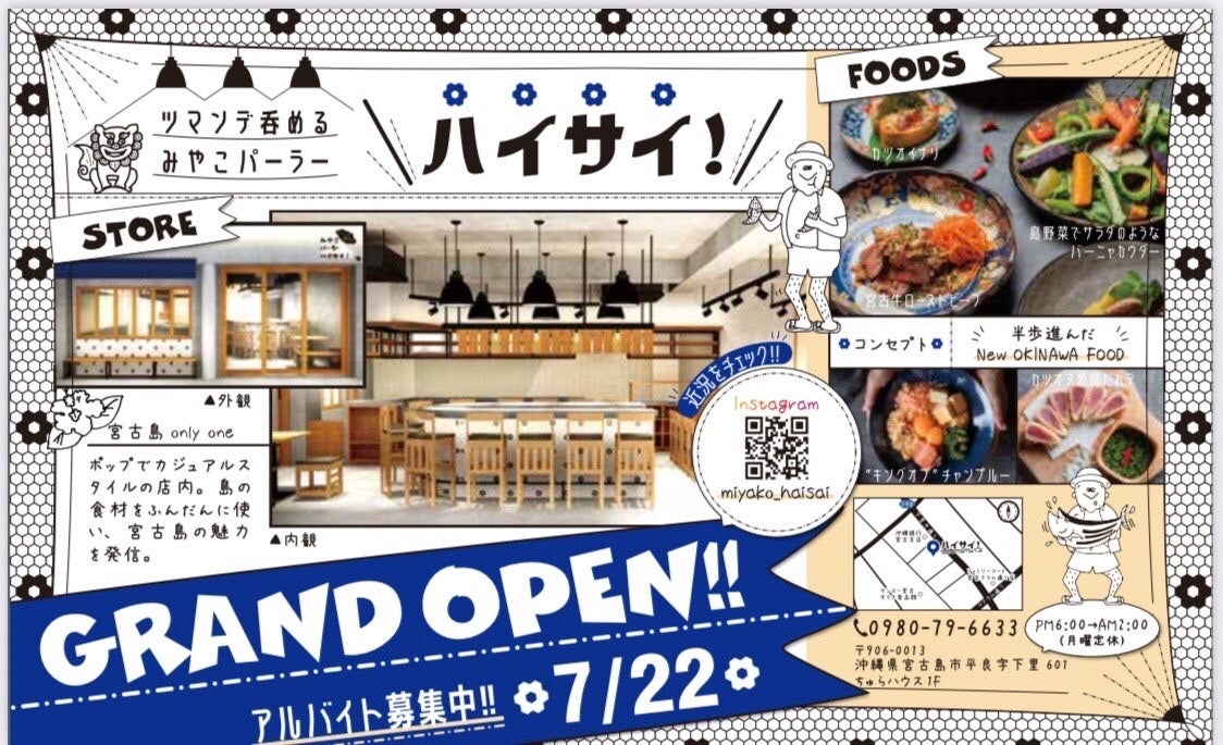 宮古島に“半歩進んだOKINAWA FOOD”をコンセプトにした『ツマンデ呑める みやこパーラー ハイサイ!』が2022年7月22日(金)オープンします。