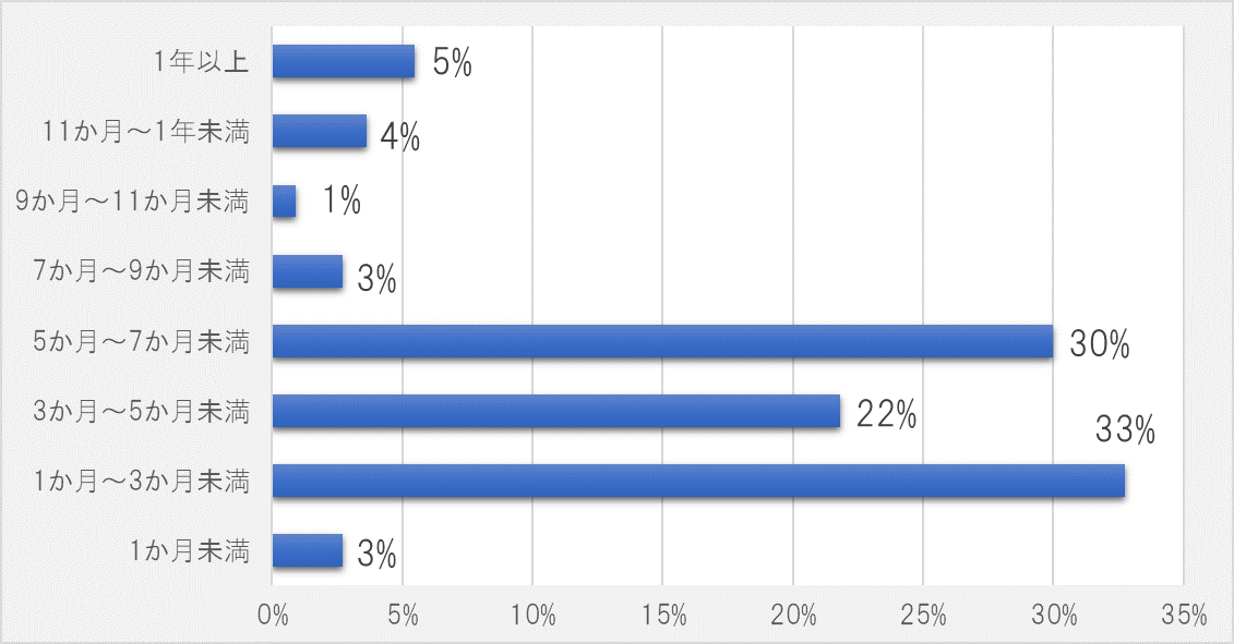 いっぽうでは1年以上の長期にわたる受講期間を選択した人もいます。習熟度や目的によって期間が変わる傾向がみられます。