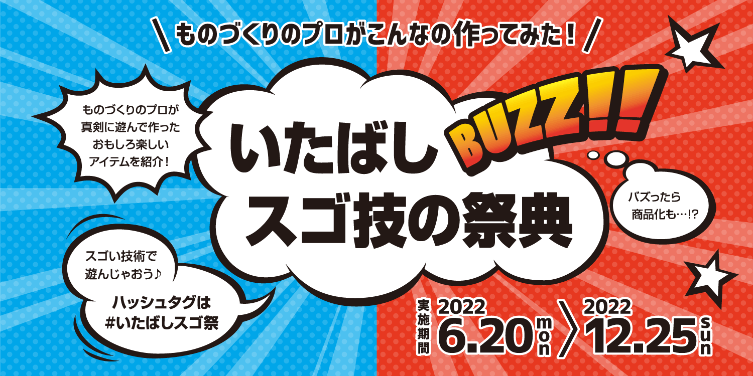 「いたばしスゴ技の祭典」は、6月20日から12月25日にかけて、SNSを活用した情報発信を行うことにより、"板橋×ものづくり"の魅力向上を図る企画です。本祭典では、ものづくりを中心とする板橋区の事業者の方々に、日ごろ培った技術やアイデアを用いて、楽しいもの、素敵なアイテム、ちょっと変わった一品などを制作いただきます。制作いただいたアイテムは、東京商工会議所板橋支部内の特設ページや、「いたばしスゴ技の祭典」公式Twitterで随時公開しています。