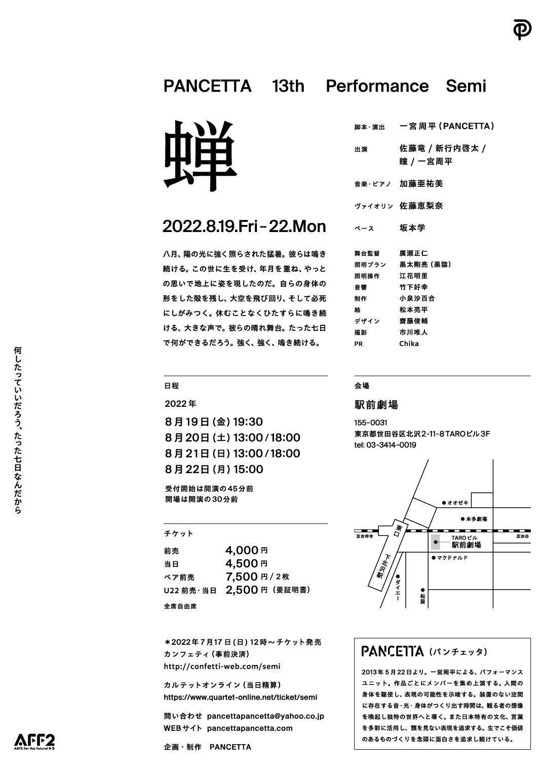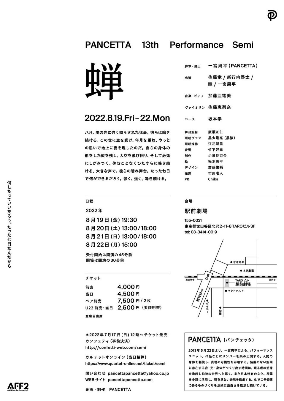 2022年8月19日(金)から上演されるPANCETTA第13弾の公演は「蝉」。