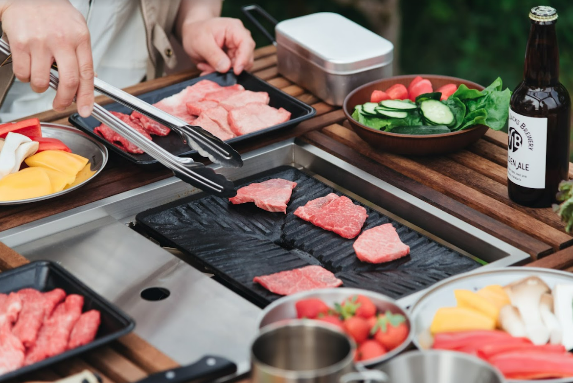 食事は「地産地消」をコンセプトに、地元山形の厳選和牛専門店が目利きした極上の「山形牛」をはじめ、旬の果物や新鮮な野菜など山形ならではの贅沢なバーベキューをご提供いたします。
