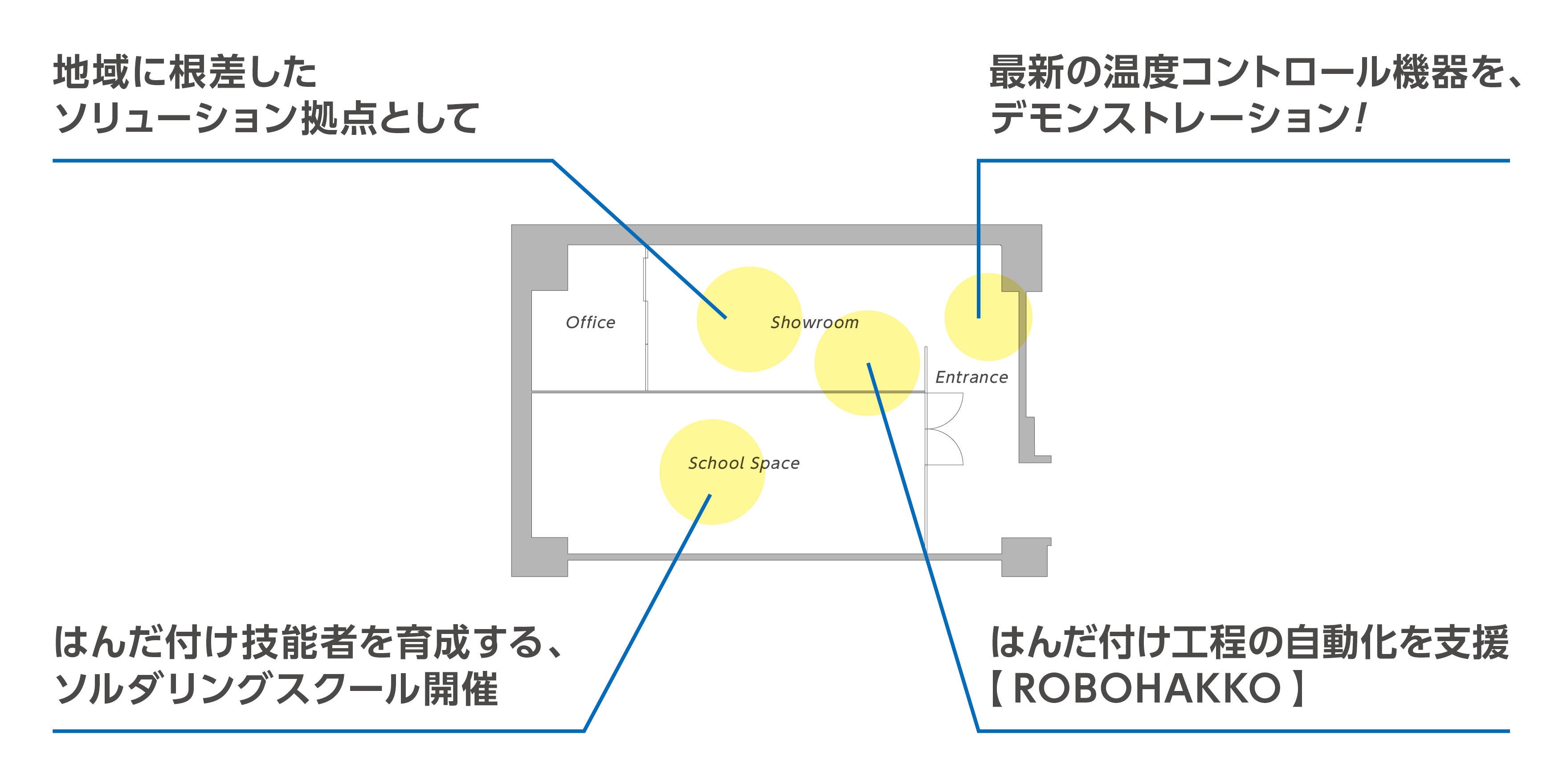 中京地区のはんだ付けユーザーの拠点として、製品導入後のきめ細やかなサポートをはじめ、お客様のモノづくりに寄り添った技術提供を充実してまいります。