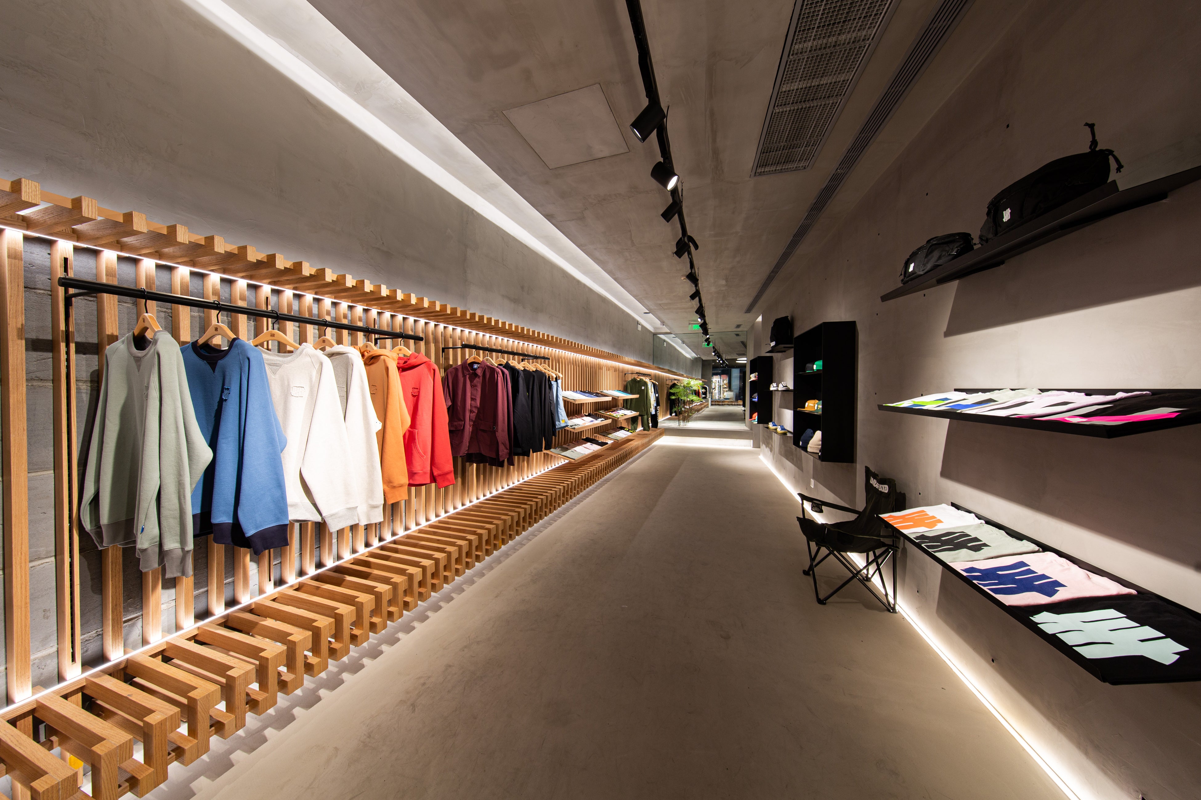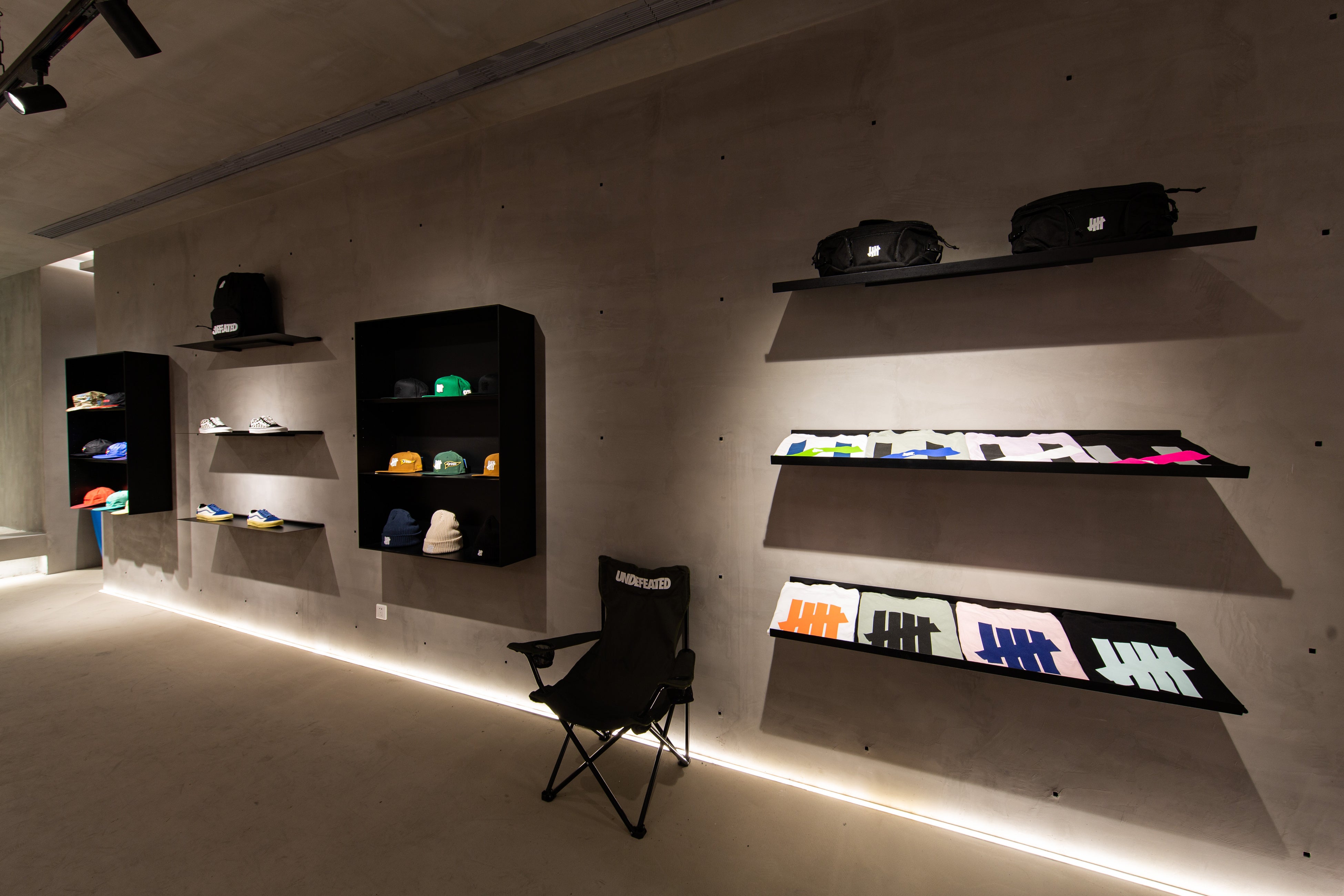 UNDEFEATEDのアメリカや日本のショップデザインからデザイン要素を分解し、ストリートカルチャーと東洋文化をテーマにスポーツ、ライフスタイル、音楽、アートなどを複合的に取り入れ、デザインを再構築した。