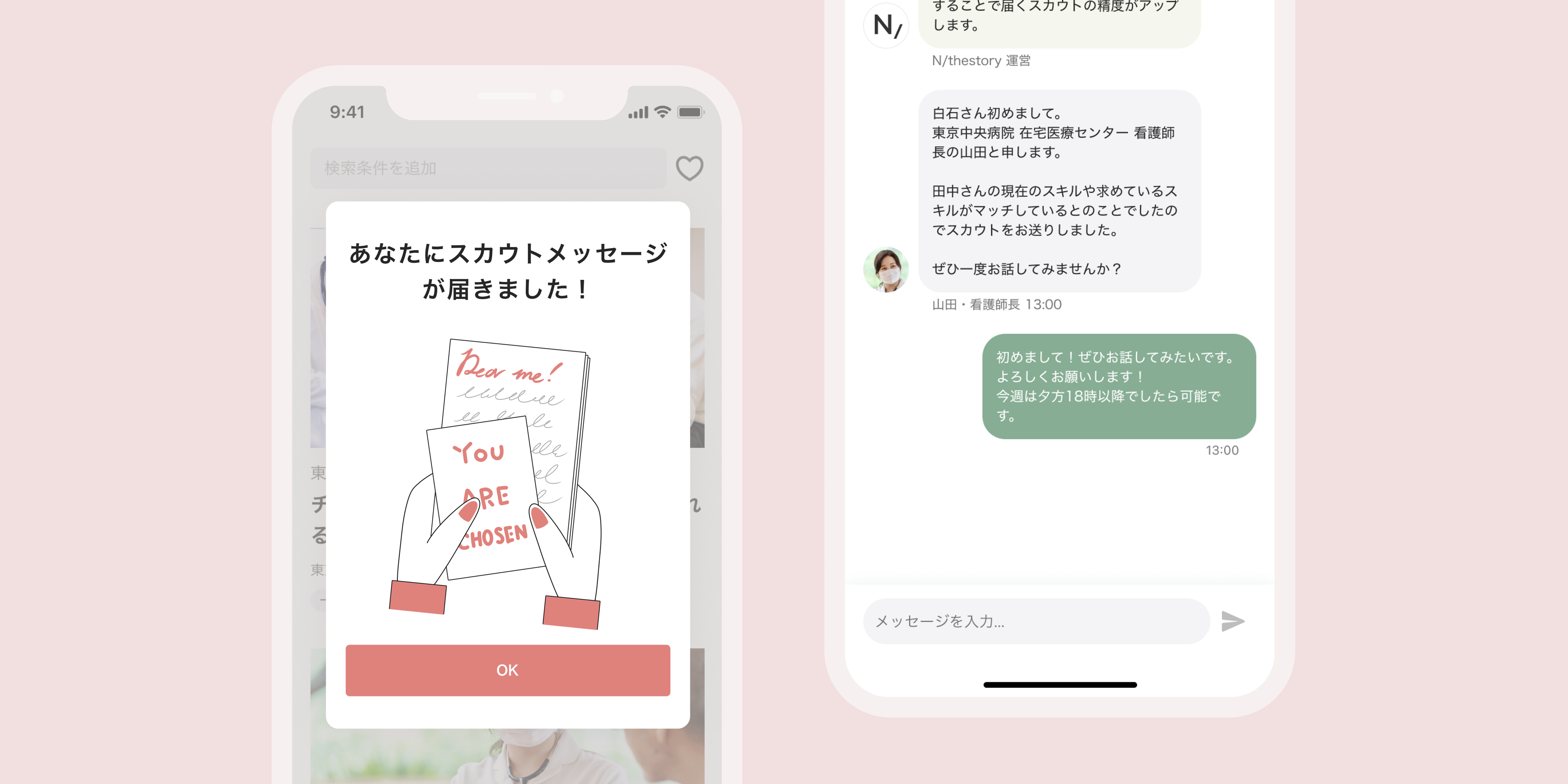 株式会社thestory(ジストリー)(本社:福岡県糸島市、代表:河京子 / 山本遼太郎)は、看護師が自分らしくキャリアを描くことができる社会を目指し、看護師のスキル・学習履歴の見える化プラットフォーム「/thestory(ジストリー)」の開発を進めております。その第一弾サービスとして、看護師の採用マッチングアプリ「N/thestory(ジストリー)」正式版(iOS,Android)を本日リリースしたことをお知らせいたします。本アプリでは、看護師の保有スキルやこれから学びたいスキルを通じた医療機関とのマッチングが可能となり、看護師の皆さまは登録から求人エントリーなどの利用まで全て無料でご利用いただけます。さらに、看護師のキャリア観や学ぶ意欲に理解・共感した医療機関から、テンプレートではない個別のスカウトメールが届くダイレクトリクルーティング機能を通じて、双方の医療への想いを実現する転職を支援してまいります。首都圏エリア在宅医療領域で先行リリースしており、現在130以上の事業所様にお申し込みをいただいております。今後はエリアや医療領域を順次拡大していく予定です。
