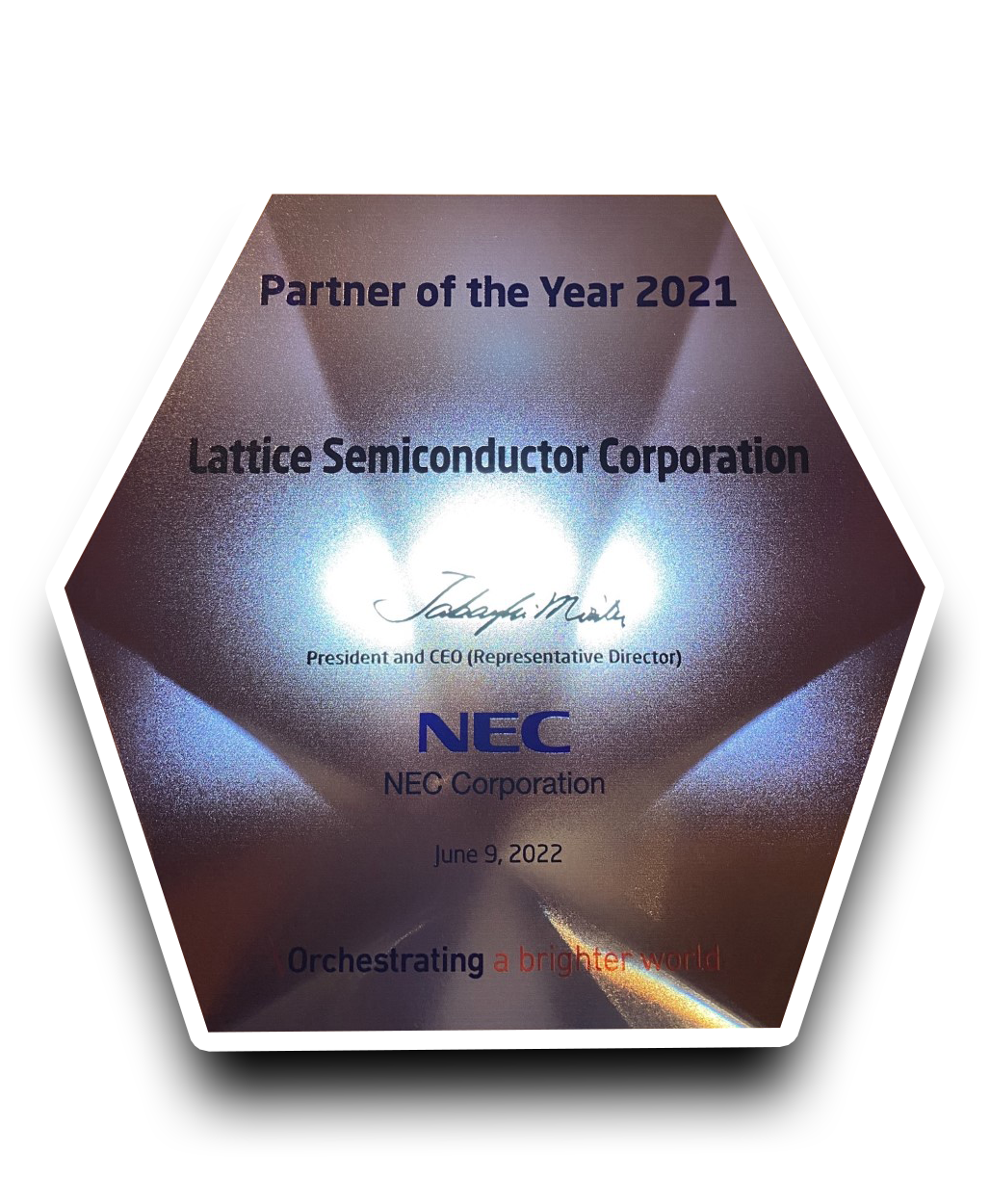 低消費電力プログラマブルデバイスで世界をリードするラティスセミコンダクター (https://www.latticesemi.com/ja-JP ) はNECの2021年「パートナー賞(Partner of the Year Award)」を受賞したと発表しました。この賞はNECがITやネットワークの広範な課題を解決するテクノロジーを提供する際、卓越した運用とカスタマー・サポートで支えた企業を称えるものです。