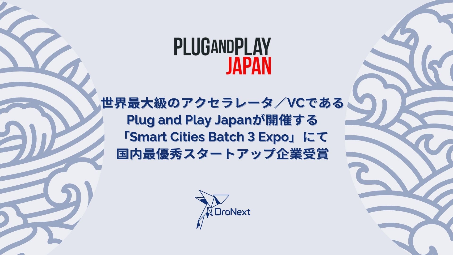 世界最大級のアクセラレータ/VCであるPlug and Play Japanが開催する「Smart Cities Batch 3 Expo」にてドローネクストが国内最優秀スタートアップ企業受賞
