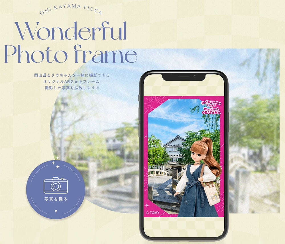 岡山県内の各観光名所を始めとした様々な場所でリカちゃんと一緒に写真を撮ることができるARフォトフレーム「Wonderful Photo Frame」を特設サイト内に設置しました。