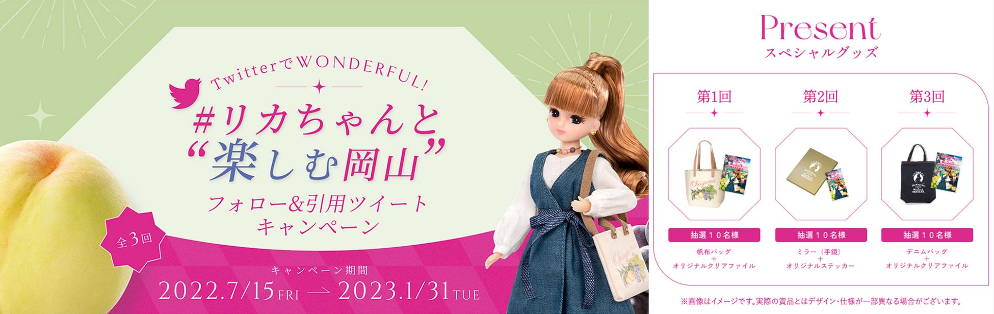 ● Twitterキャンペーン「#リカちゃんと楽しむ岡山 フォロー&引用ツイートキャンペーン」