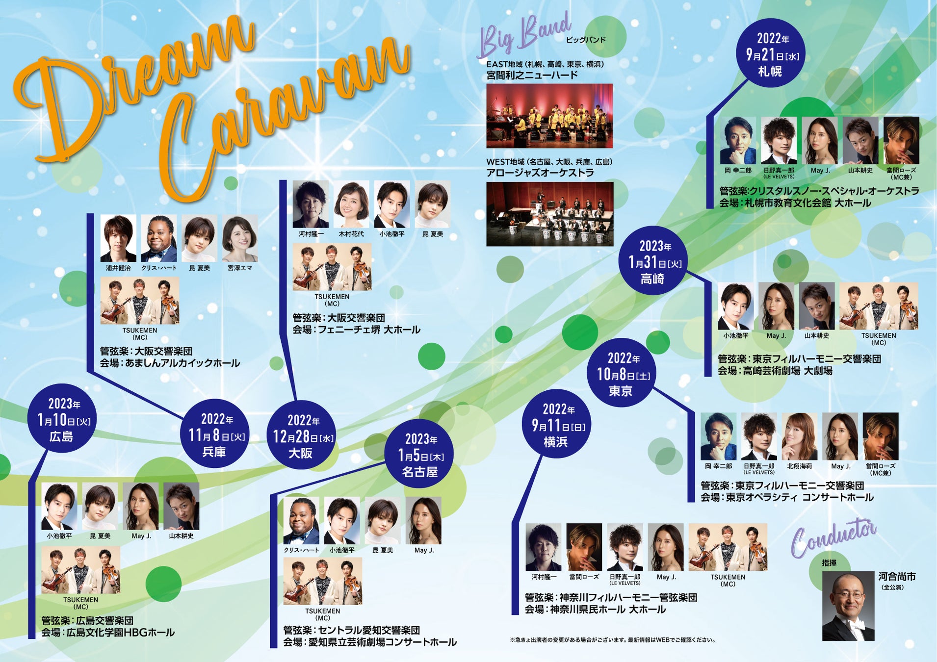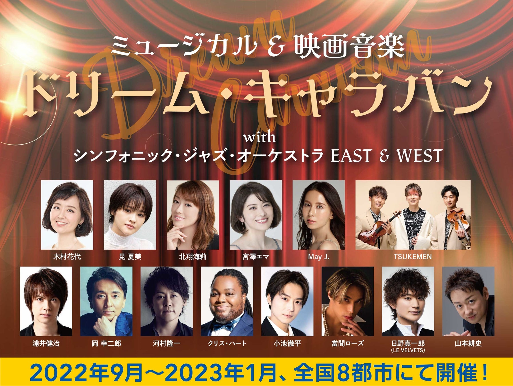 一般社団法人日本ポピュラー音楽協会(東京都港区、代表理事:森寿男)は、日本を代表する交響楽団とビッグバンドによる混成スペシャル・オーケストラの演奏にのせて実力派ヴォーカリストたちが豪華響宴するコンサート『ミュージカル & 映画音楽 ドリーム・キャラバン』を2022年9月〜2023年1月にかけて、全国8都市にて開催いたします。