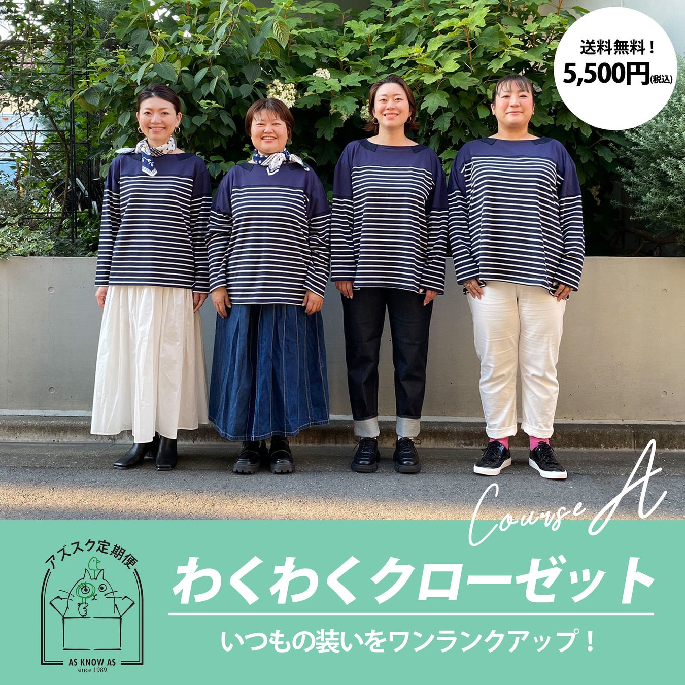 そんなお悩みを解決するべく、30年以上お客様と築き上げてきたノウハウやデータを基に、お届けする季節に合わせたアイテムを毎月セレクトし、みなさまのご自宅へお届けいたします。手持ちのお洋服に合わせやすい定番のアイテムや一枚でコーディネートが決まるセットアイテムなど日々のコーディネートをサポートすると同時に、毎月異なるアイテムが届く、アズスク定期便ならではの醍醐味。毎月お届けするからこそお届けアイテム同士を組み合わせておしゃれを楽しんだり、何が届くかわからないワクワクと今まで知らなかった新しい自分の発見も楽しんでほしい、そんなファッションへに対するアズ ノゥ アズの想いを込めています。
