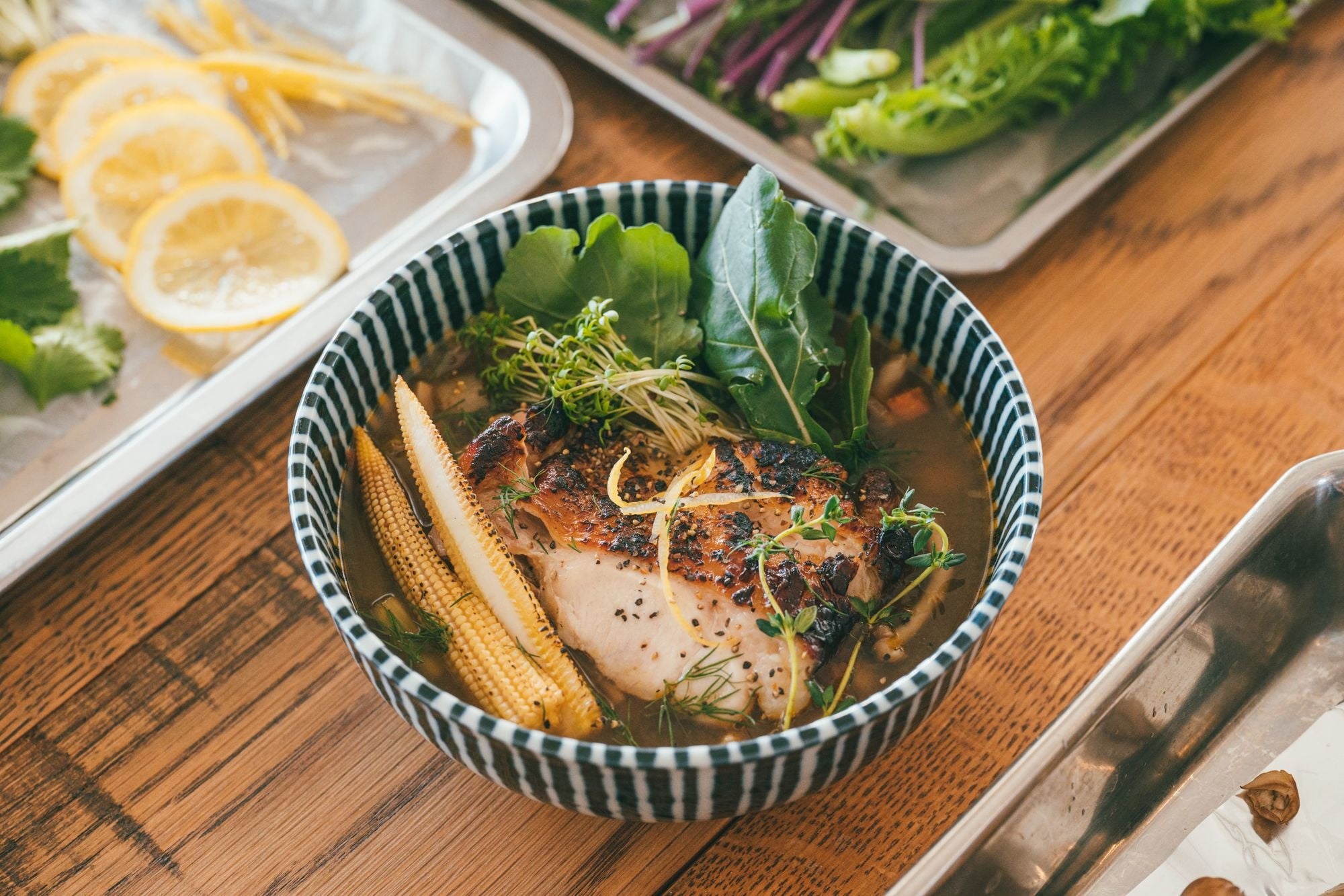 ・檸檬とグリルチキンのハーブスープ