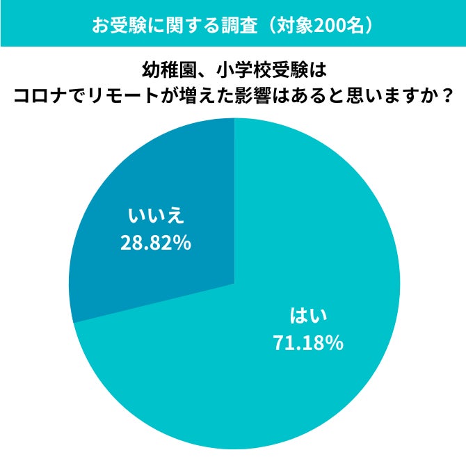 コロナウイルスによるリモートワークの影響が幼稚園・小学校受験に与えた影響。7割以上のユーザーが受験や教育の考え方が変わったと回答。