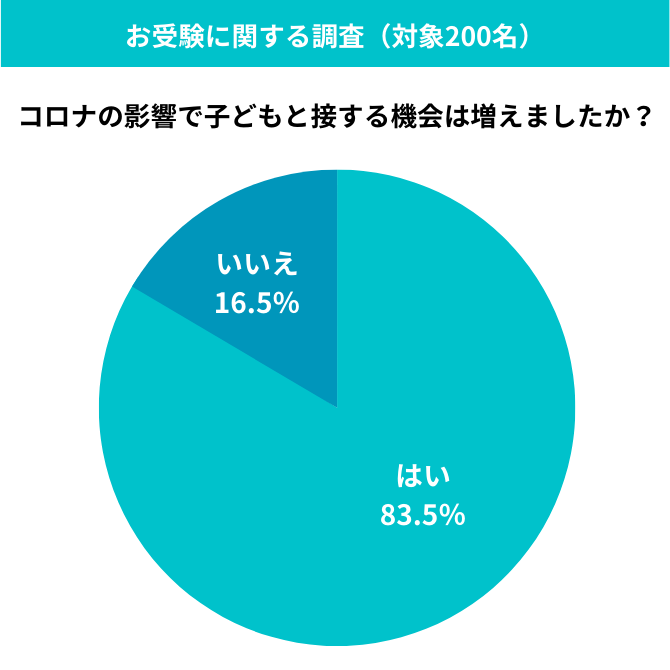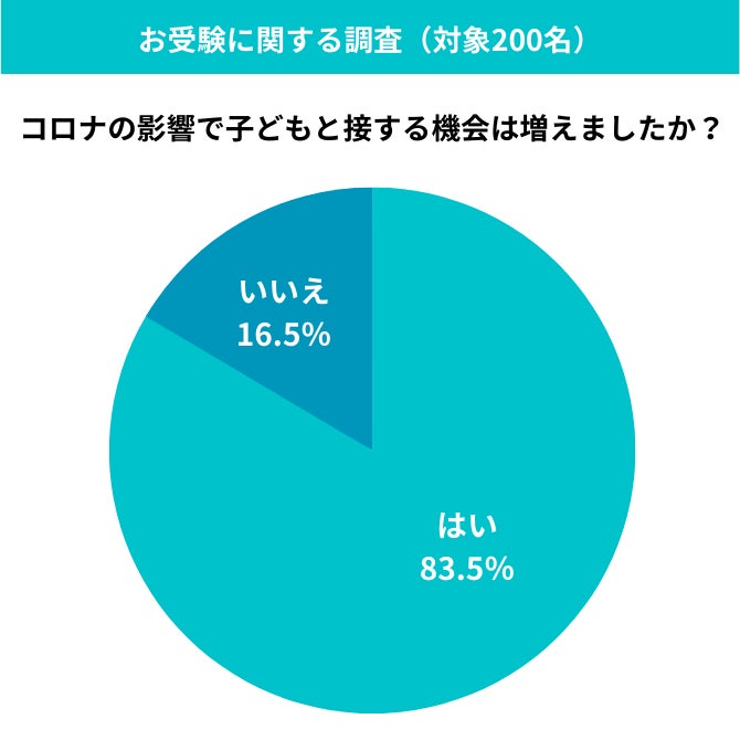 新型コロナウイルスの影響で子どもと接する機会が増えたと感じる方は83.5%にも及びました。「おうち時間」が増えていく中で、お子様と一緒に過ごす時間が圧倒的に増えたことが分かります。