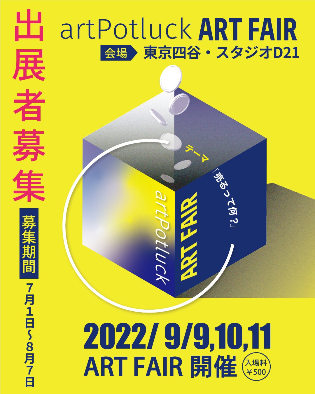 artPotluck ART FAIR 出展者募集!東京四谷・スタジオD21で2022/9月9日(金)10日(土)11日(日)に開催するアートフェアで出展者を募集開始。テーマは『アートを売ること』