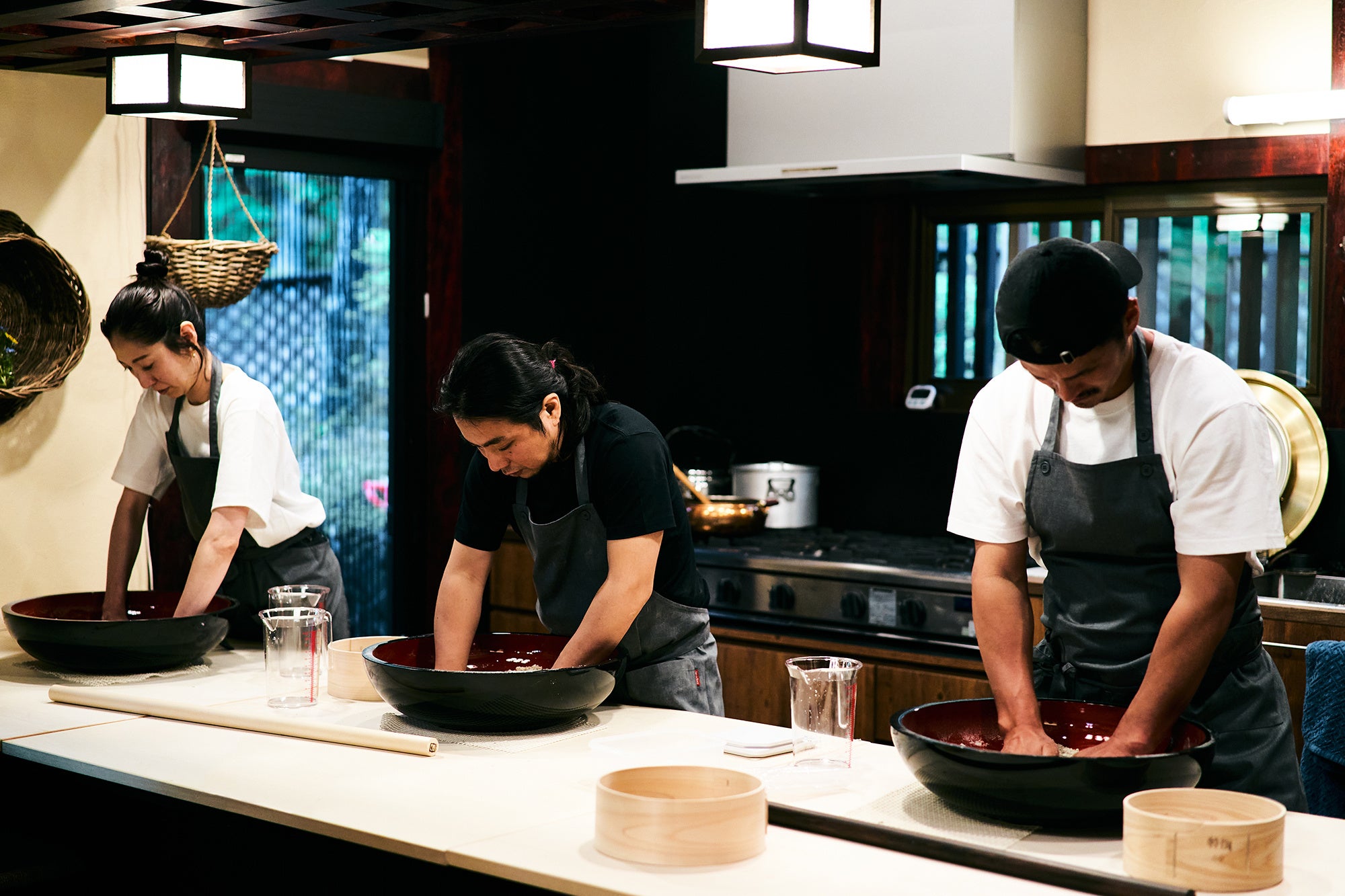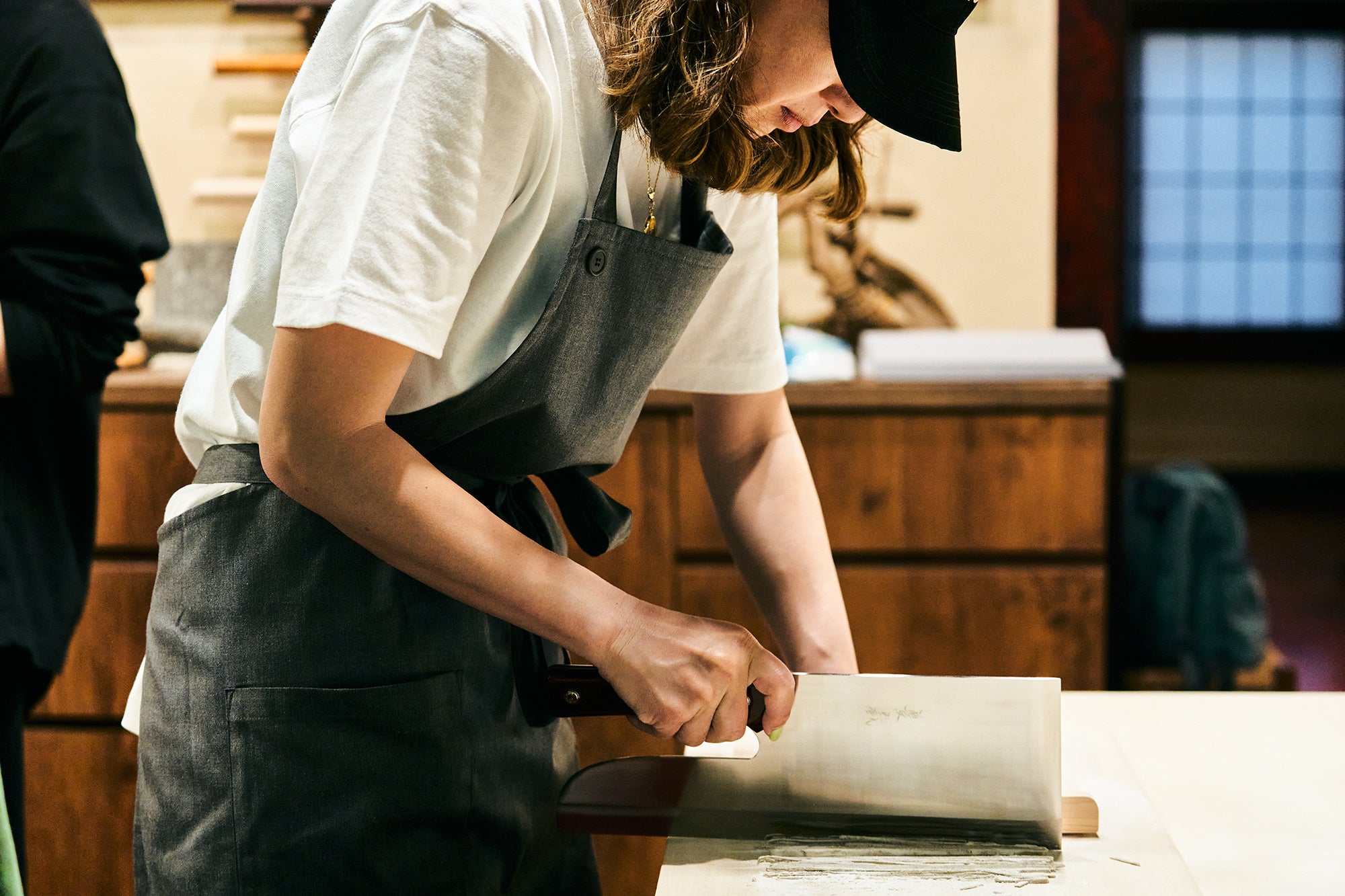 そばハウス安曇野のメインアクティビティのそば打ち体験。お子様も参加可能です。