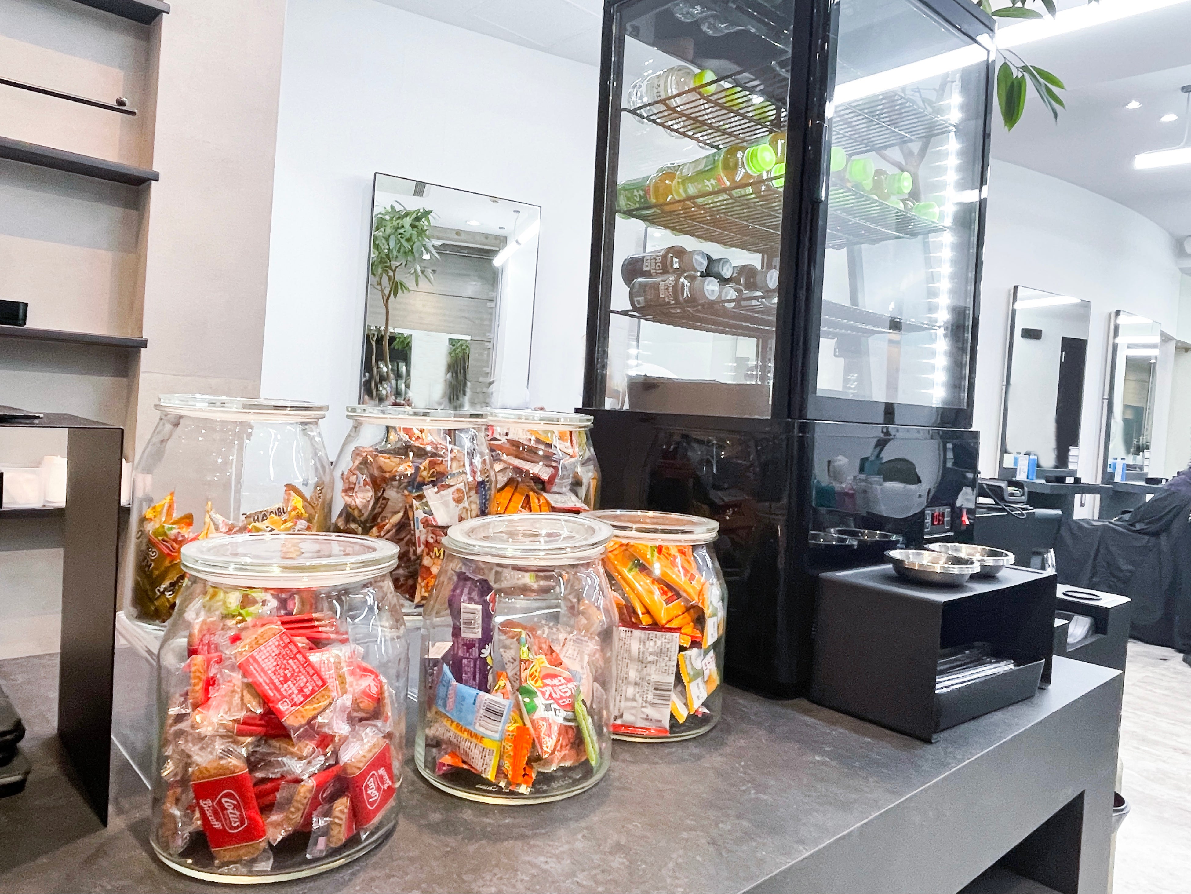 従来のサロンにはなかったドリンク+フードエリアやリラクゼーションエリアをご用意したのは、このサロンをただ髪を切るだけの場所ではなく、お客様にとって「癒やしの場所」として使っていただきたいという思いからです。