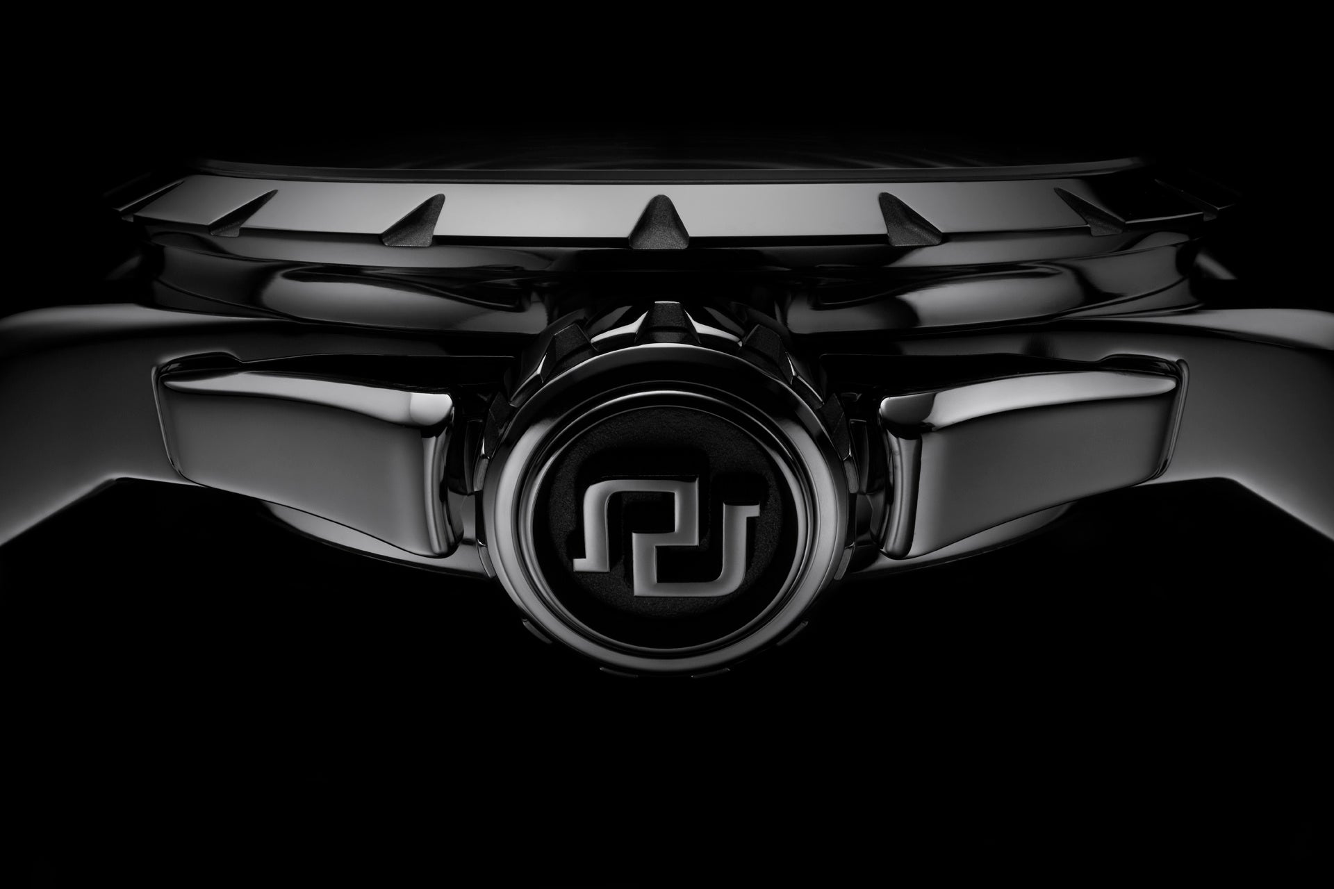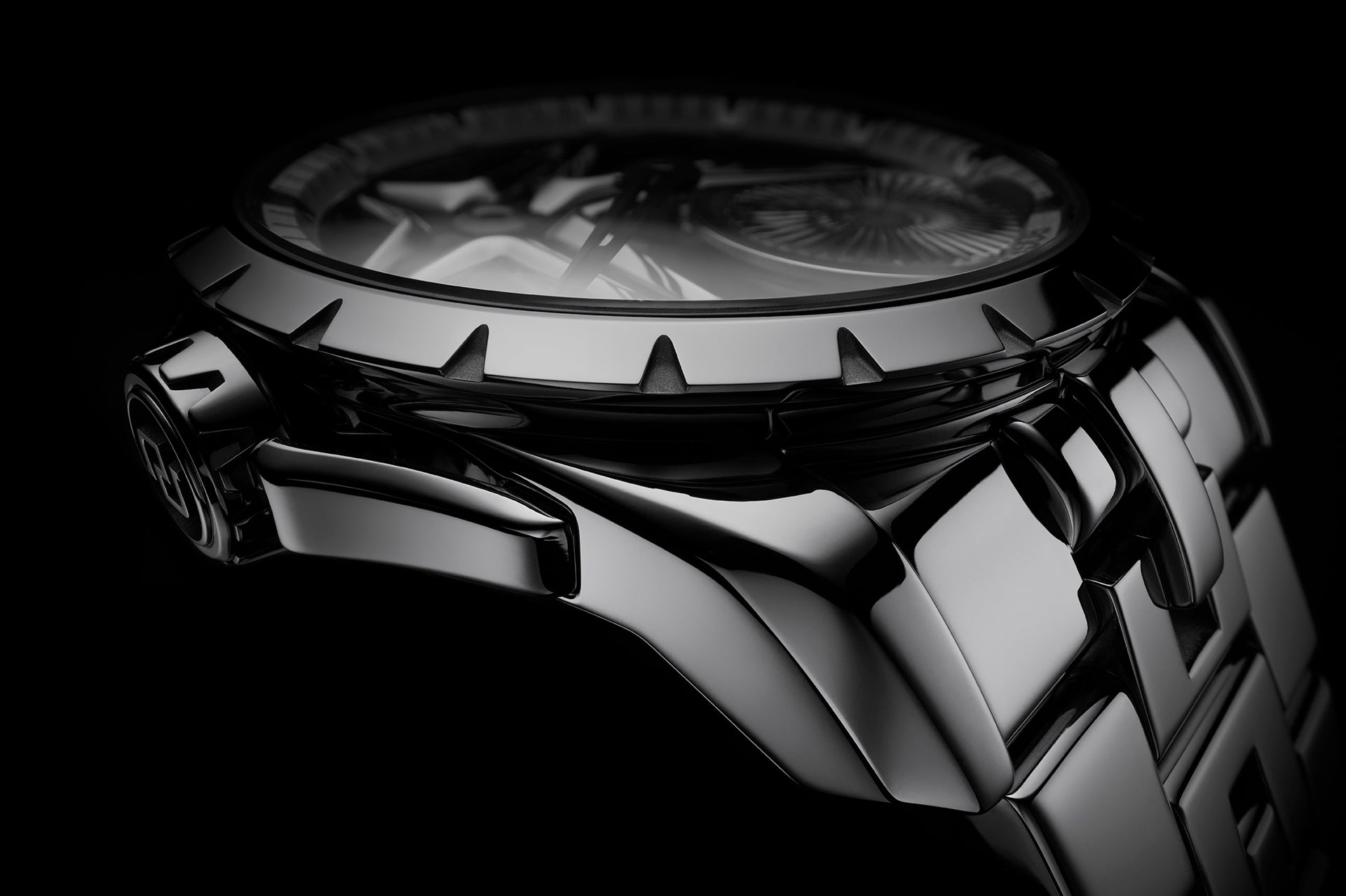 ロジェ・デュブイの象徴的デザインである”星”。空山氏は、ブランド創始者である故ロジェ・デュブイのオマージュとして元々の形状を残すことにこだわり、彼の作品の特徴である”セクシーロボットのような曲線と丸み”を際立たせました。そしてなんといっても、ブランド初のフルポリッシュ仕上げが特徴な『エクスカリバー モノバランシエ ソラヤマ』。すべてのパーツをポリッシュし、全角度をわずかにカーブさせることで、この時計に圧倒的な存在感ととラグジュアリーさを表現することに成功しました。