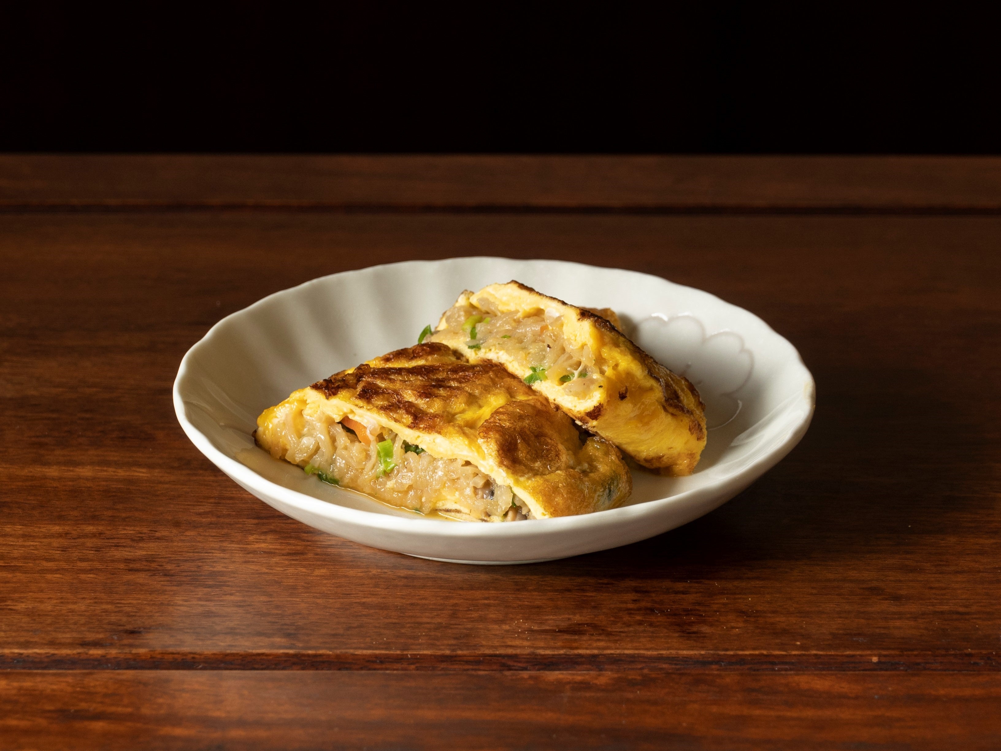 切干し大根のオムレツです。優しい味わいで、大人も子どもも美味しくいただける、鉄板の台湾家庭料理です。