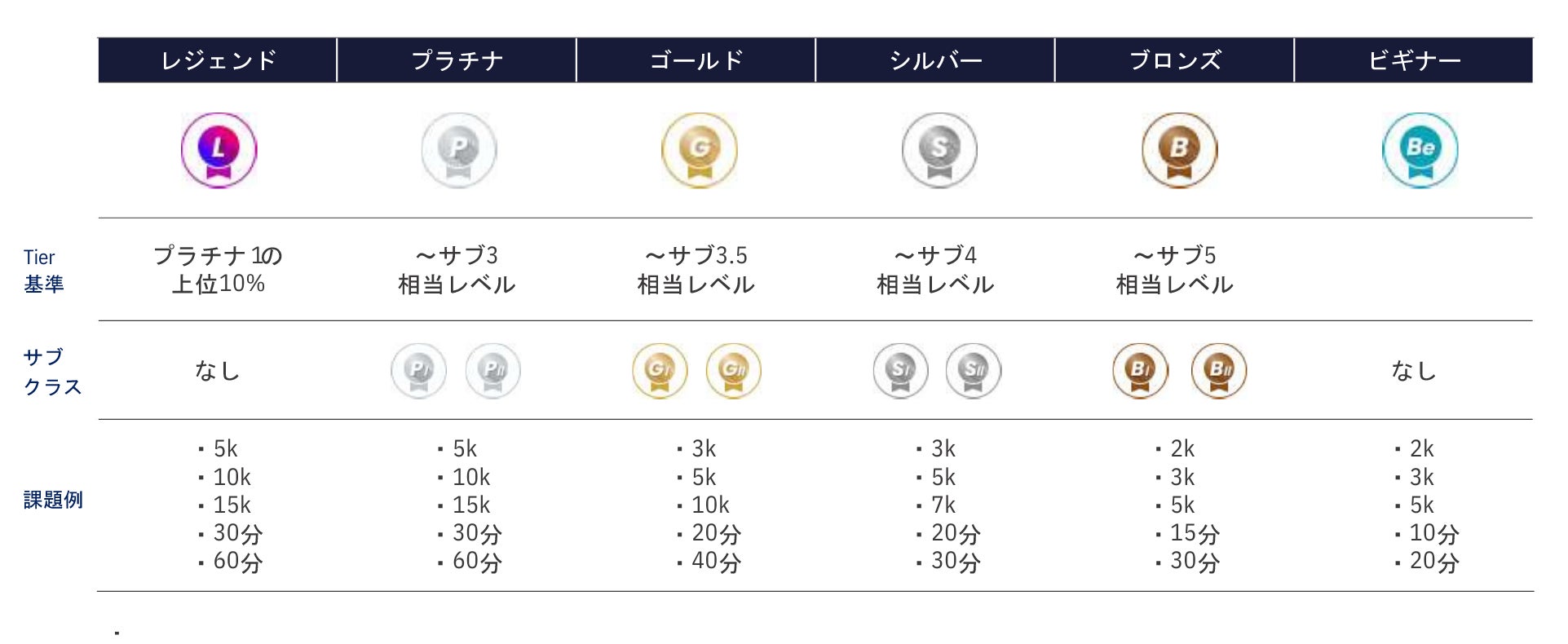 Run Crewではユーザーのみなさんを走力に応じてTierと呼ぶランク分けを行います。