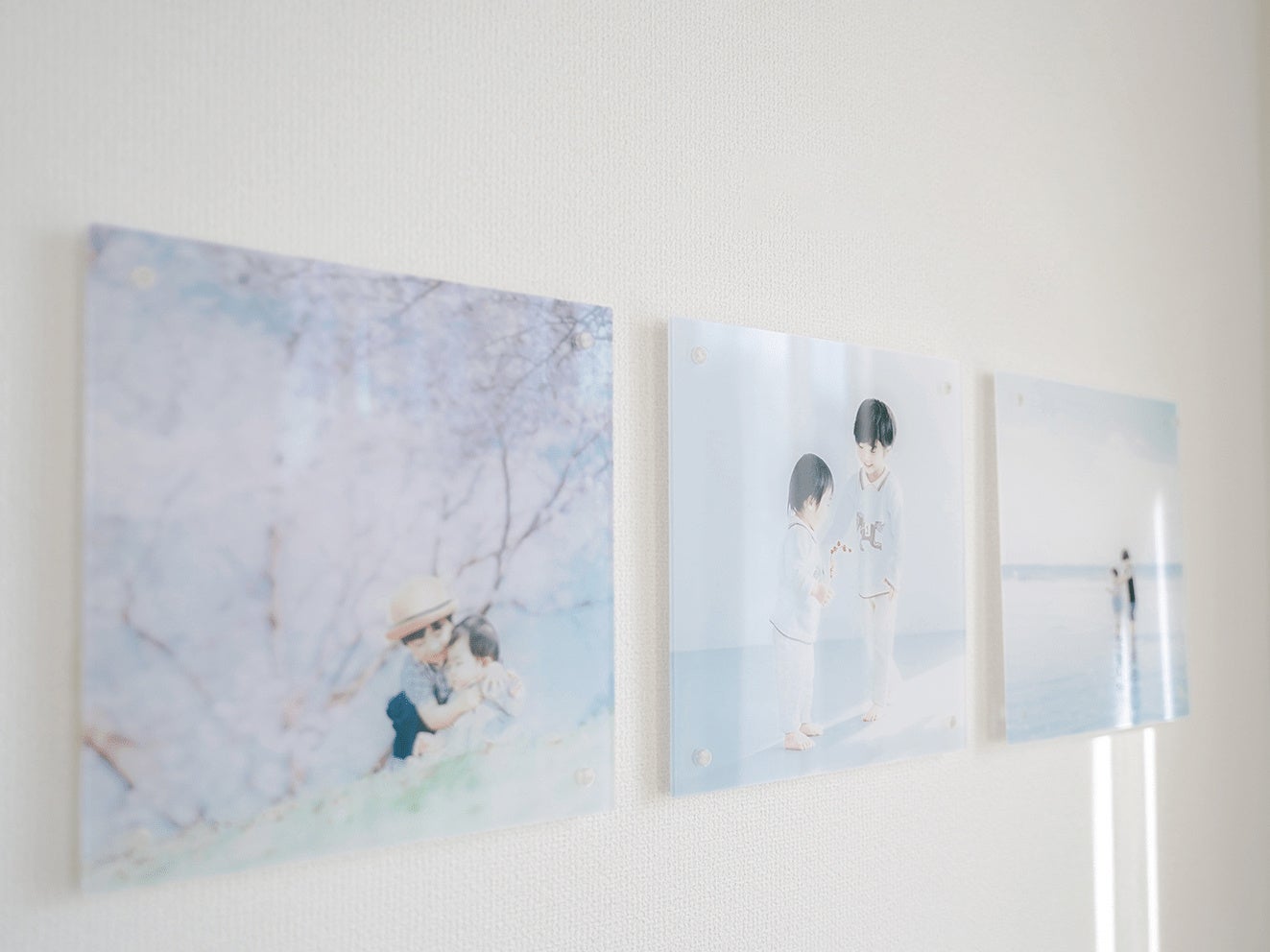 透明のアクリル板に写真やイラストを直接プリントするアクリルフォト。インテリアやプチギフトで喜ばれています