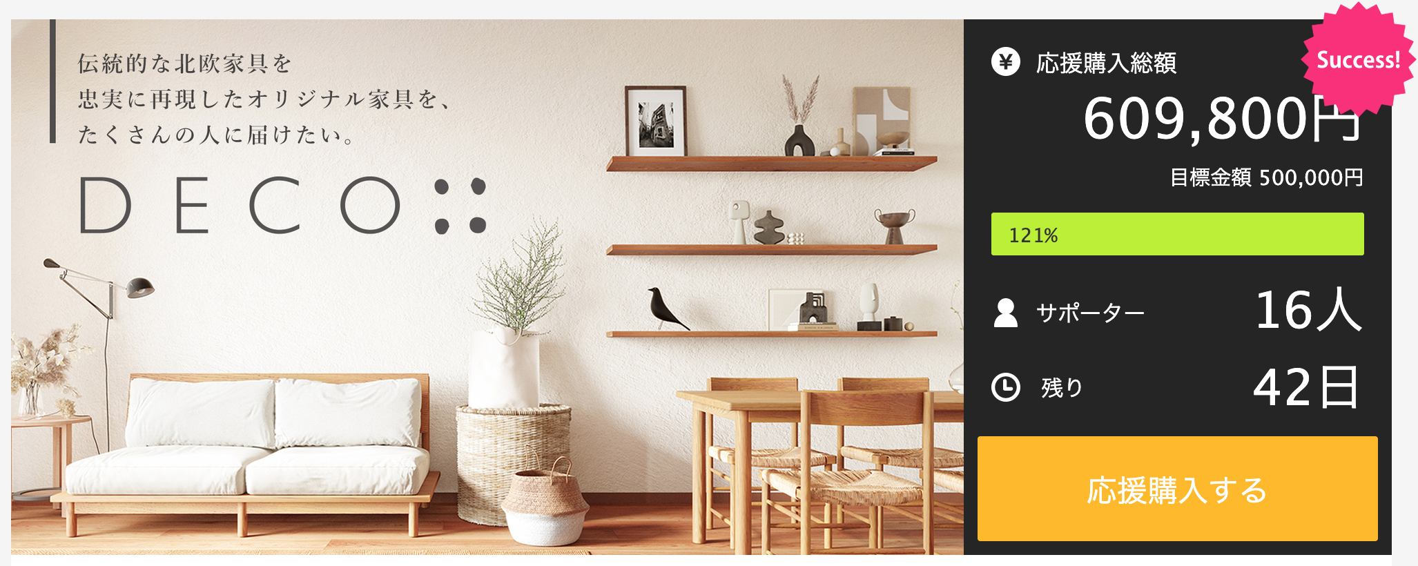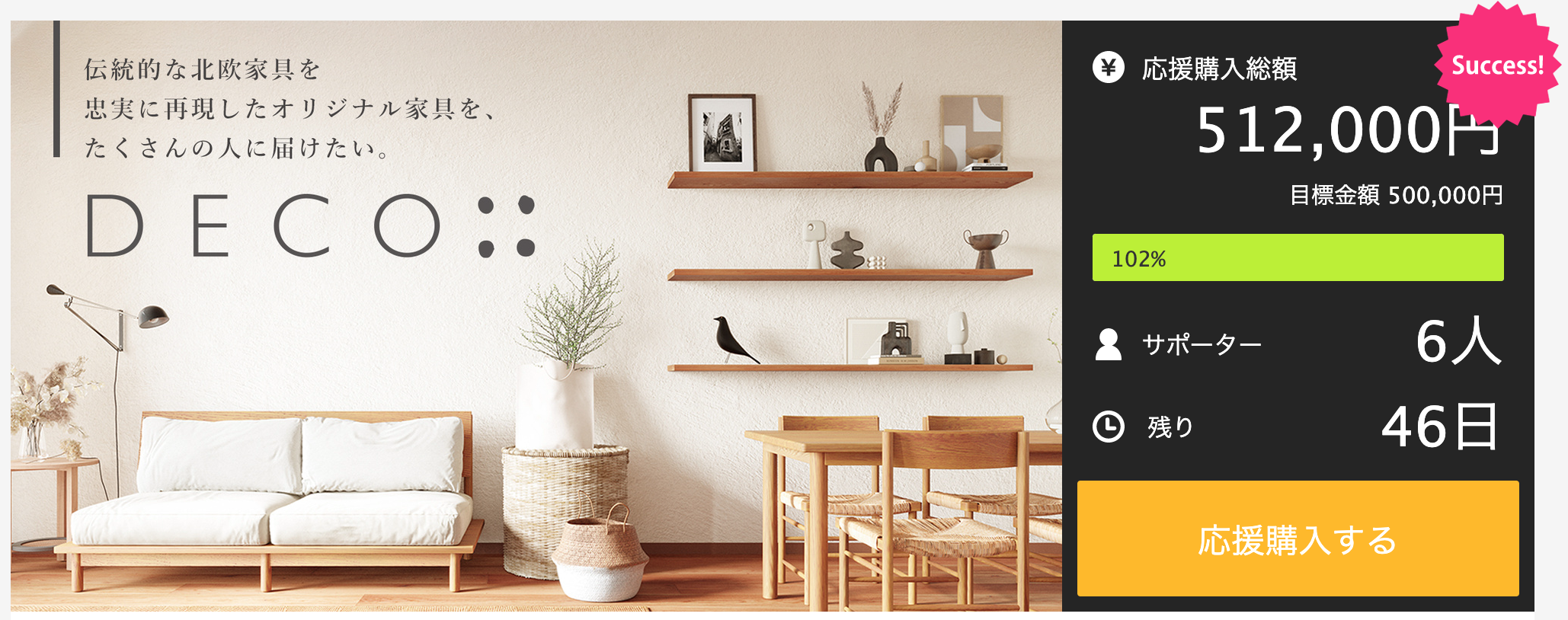 Makuake公開初日で目標金額100%を達成!北欧デザインの家具「DECOシリーズ」がリリースされます。