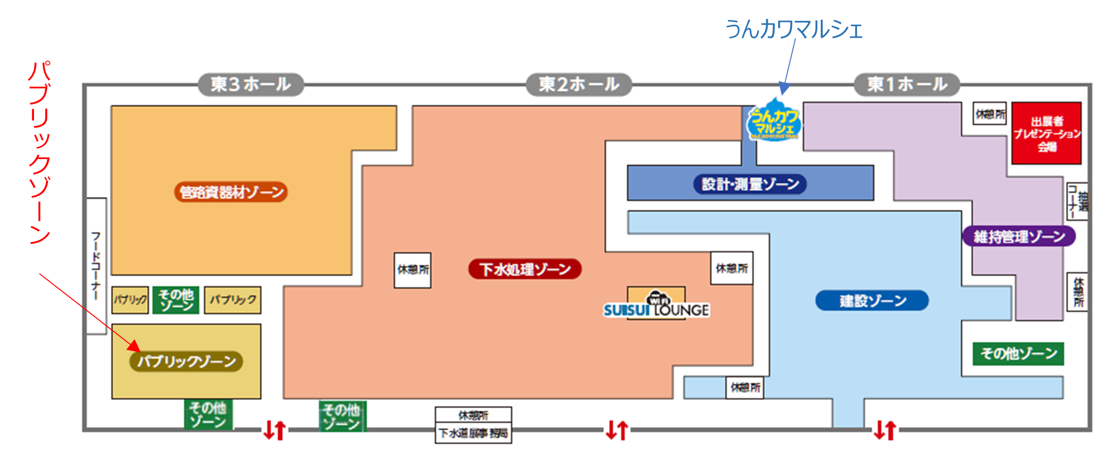 ・パブリックゾーン(小学生等一般来場者に、下水道の役割や価値、今後の可能性等をわかりやすく伝えるため、地方公共団体等が出展)