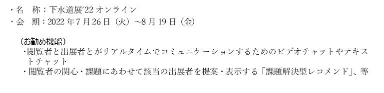 ◆名 称:暮らしをつくる。未来をつくる。「下水道展ʼ22東京」
