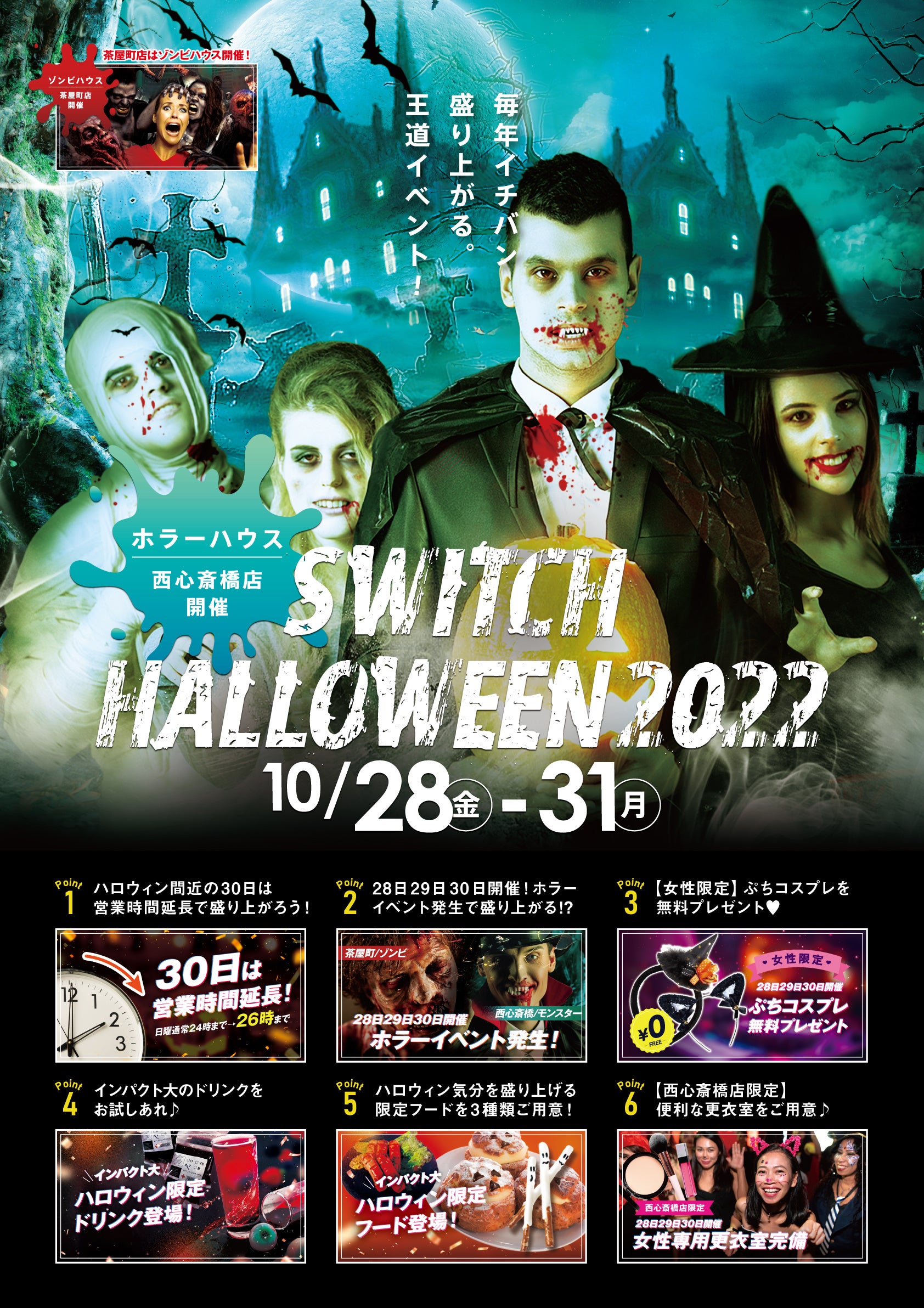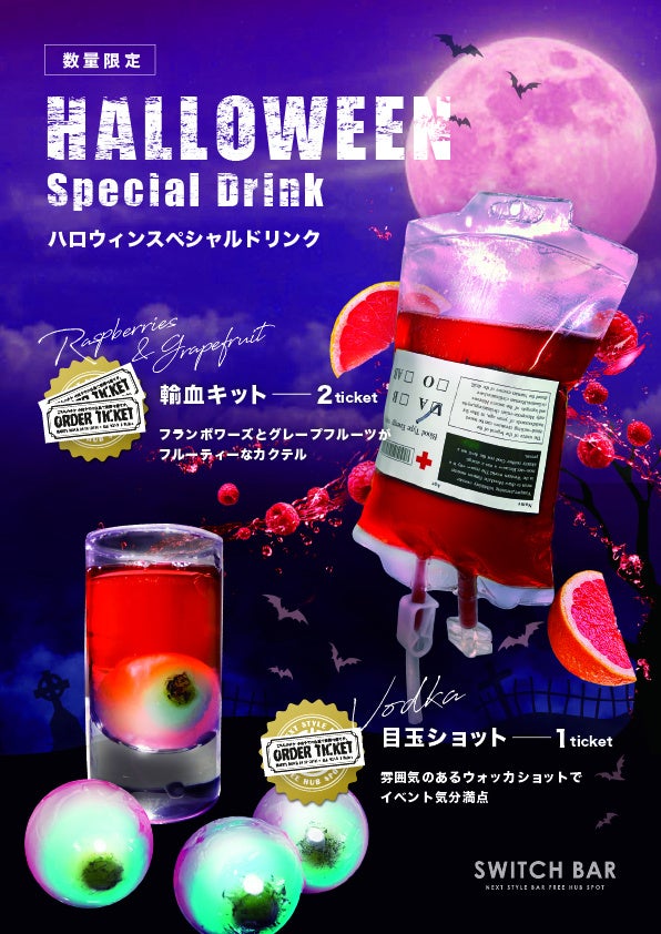 株式会社スイッチ(本社:大阪府大阪市中央区、代表取締役:吉川 日向)が運営するスイッチバー2店舗にて(梅田・心斎橋)にて、10月28日 - 10月31日の期間限定でハロウィンイベントを開催いたします。
