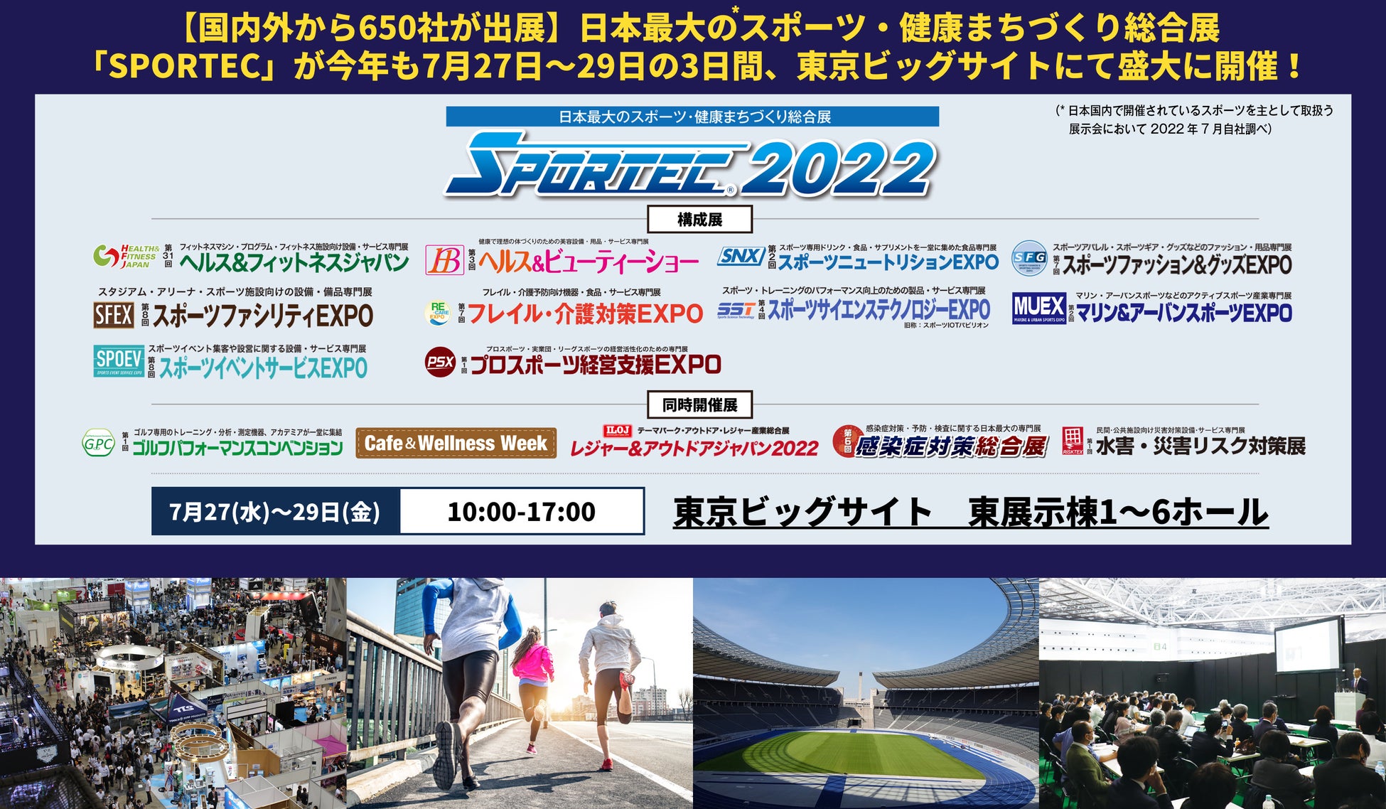 【国内外から650社が出展】日本最大*のスポーツ・健康まちづくりの総合展『SPORTEC』が今年も7月27日〜29日の3日間、東京ビッグサイトにて盛大に開催!