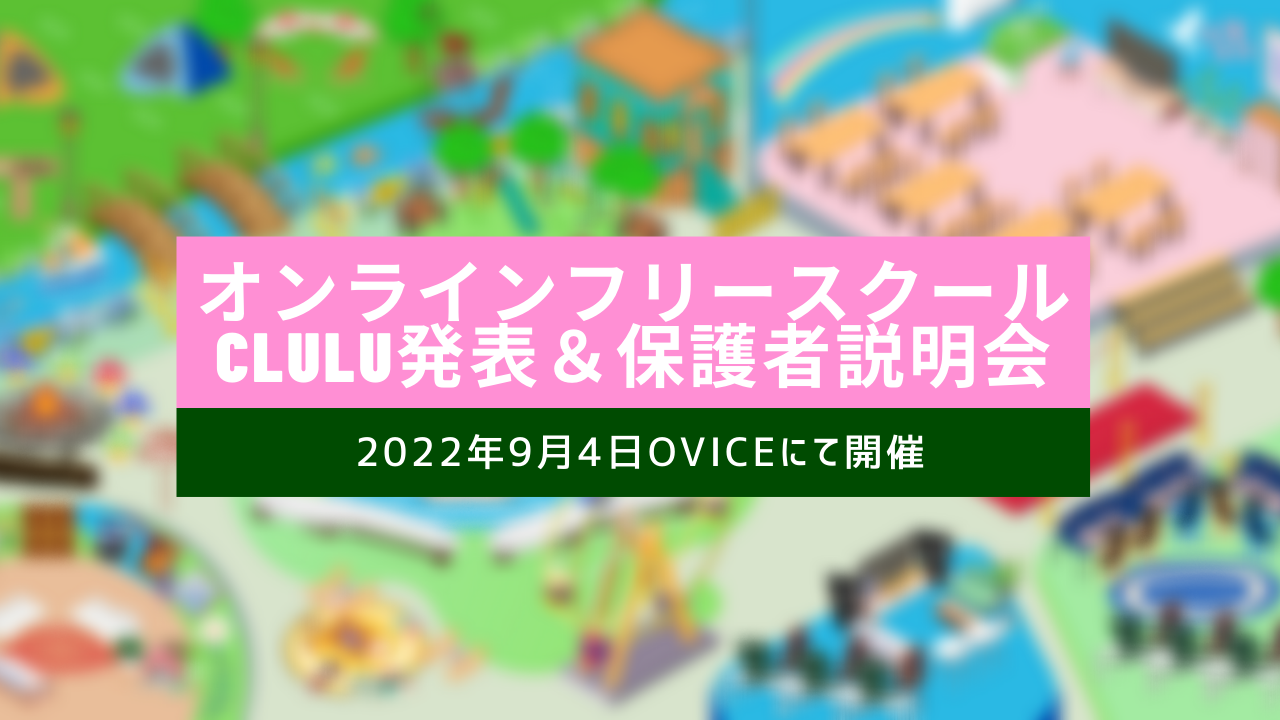 9月4日15:00からオンラインフリースクールCLULUの発表会を実施致します。