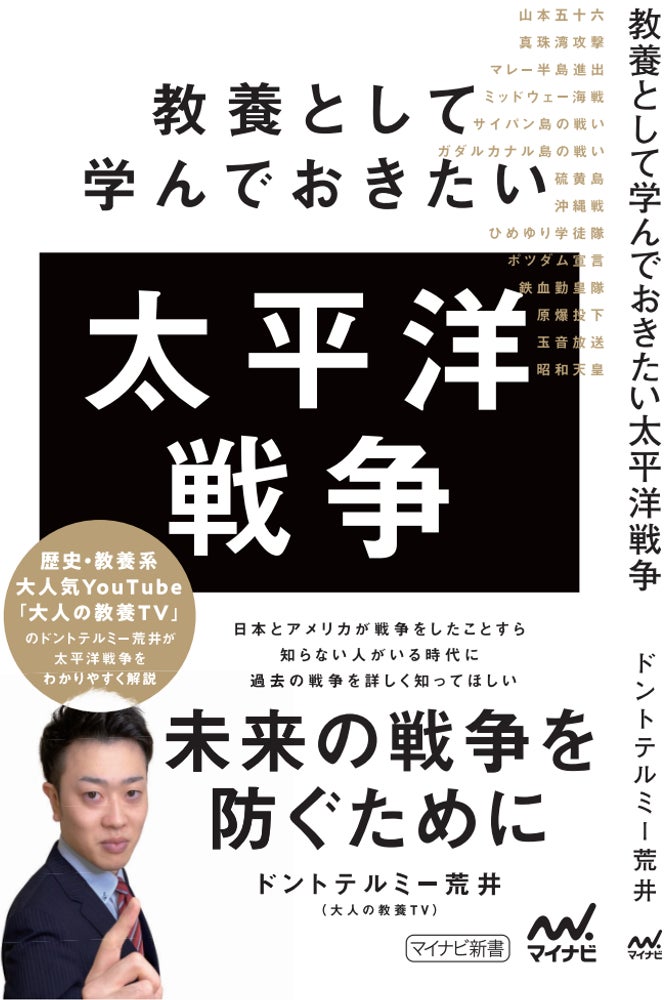 YouTubeチャンネル「大人の教養TV」(登録者数23万人)では、2022年7月28日にマイナビ出版より書籍『教養として学んでおきたい太平洋戦争』を出版いたします。