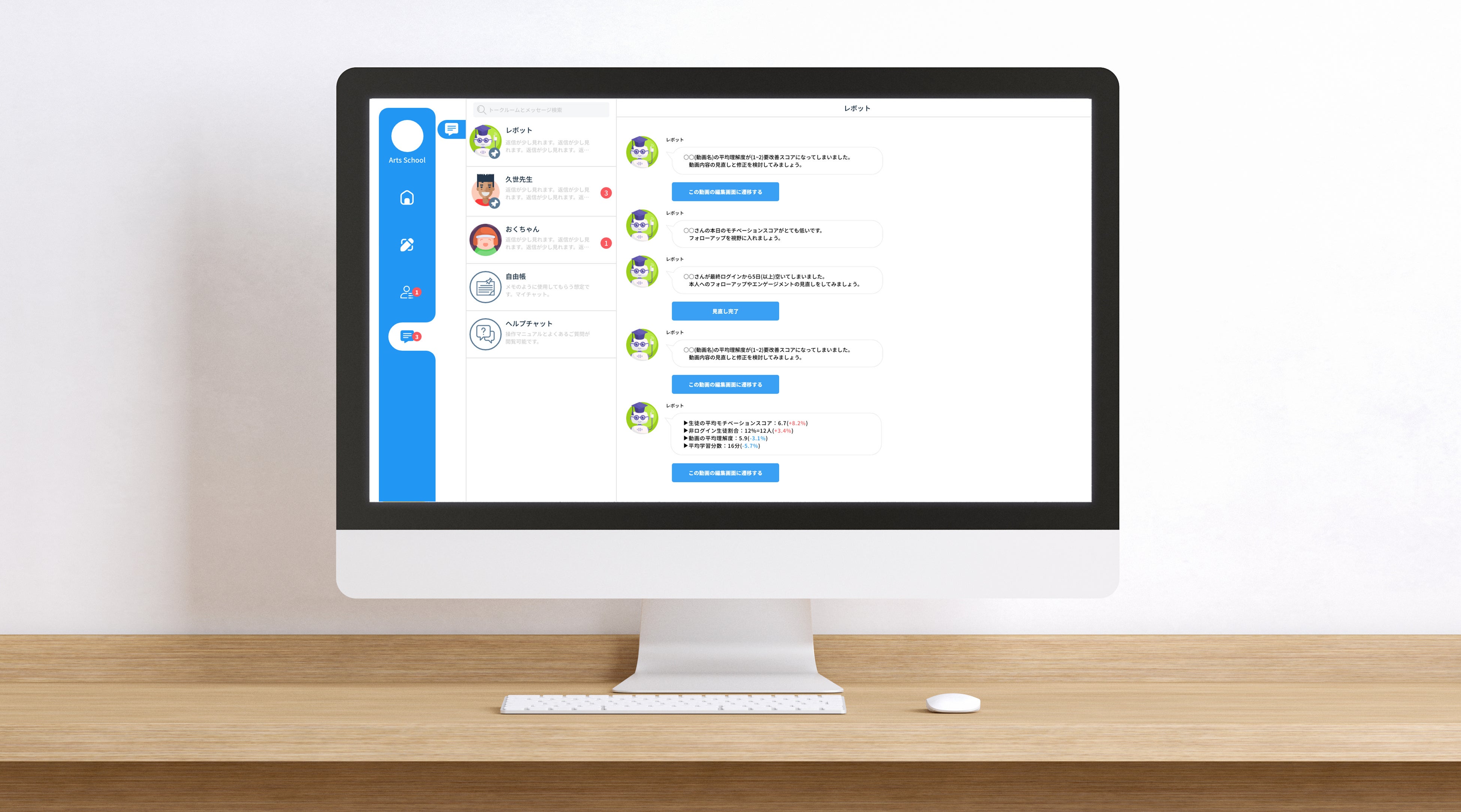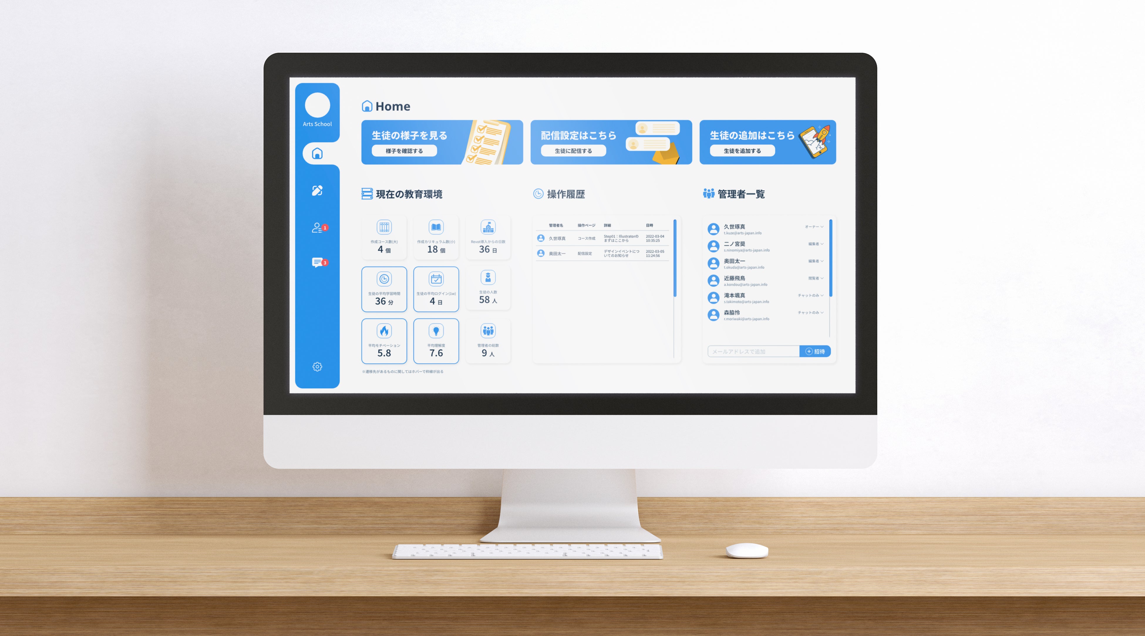 教材やコミュニケーションのデジタル化はもちろん、学習者の行動データや学習環境のデータを自動で集計し、レポーティングする機能が付いており、限られた講師のリソースの最大化に貢献することができます。