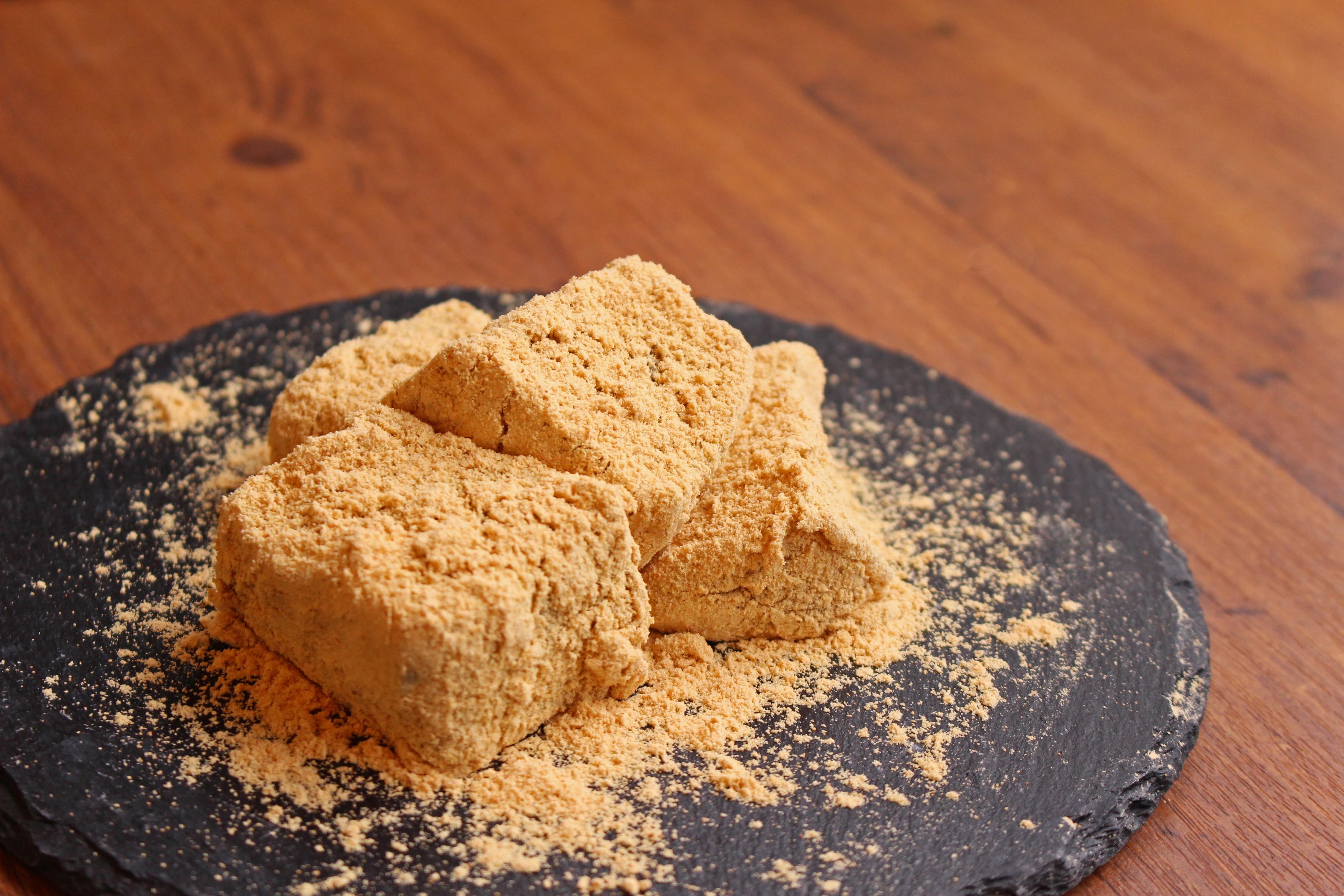 国産きな粉をふんだんにまとったわらび餅は、食べればその食感に感動を覚えるほど。門外不出の配合率が生み出す、とろっとろな究極のやわらかさがクセになります。初めてお召し上がりいただいたお客様からは「こんなわらびもちは食べたことがない!」とのお声をいただきます。一度食べればハマること間違いなし!爪楊枝が刺さらないほどの食感をぜひ一度体験してみてください。