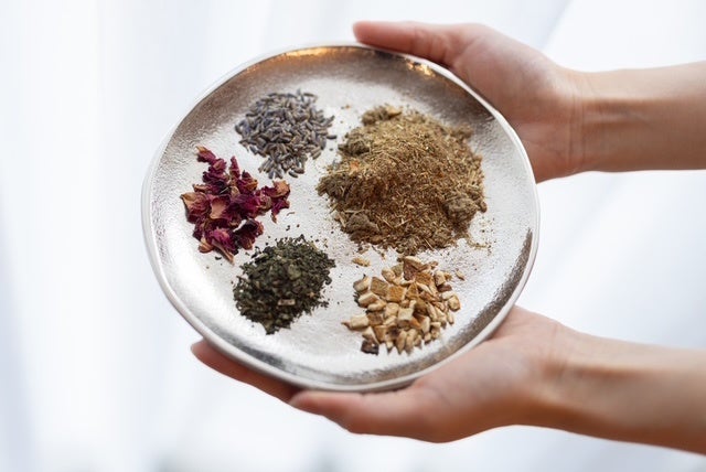 よもぎ蒸しにブレンドするハーブをその日のご自分の気分や体調に合わせてお選びいただけます。