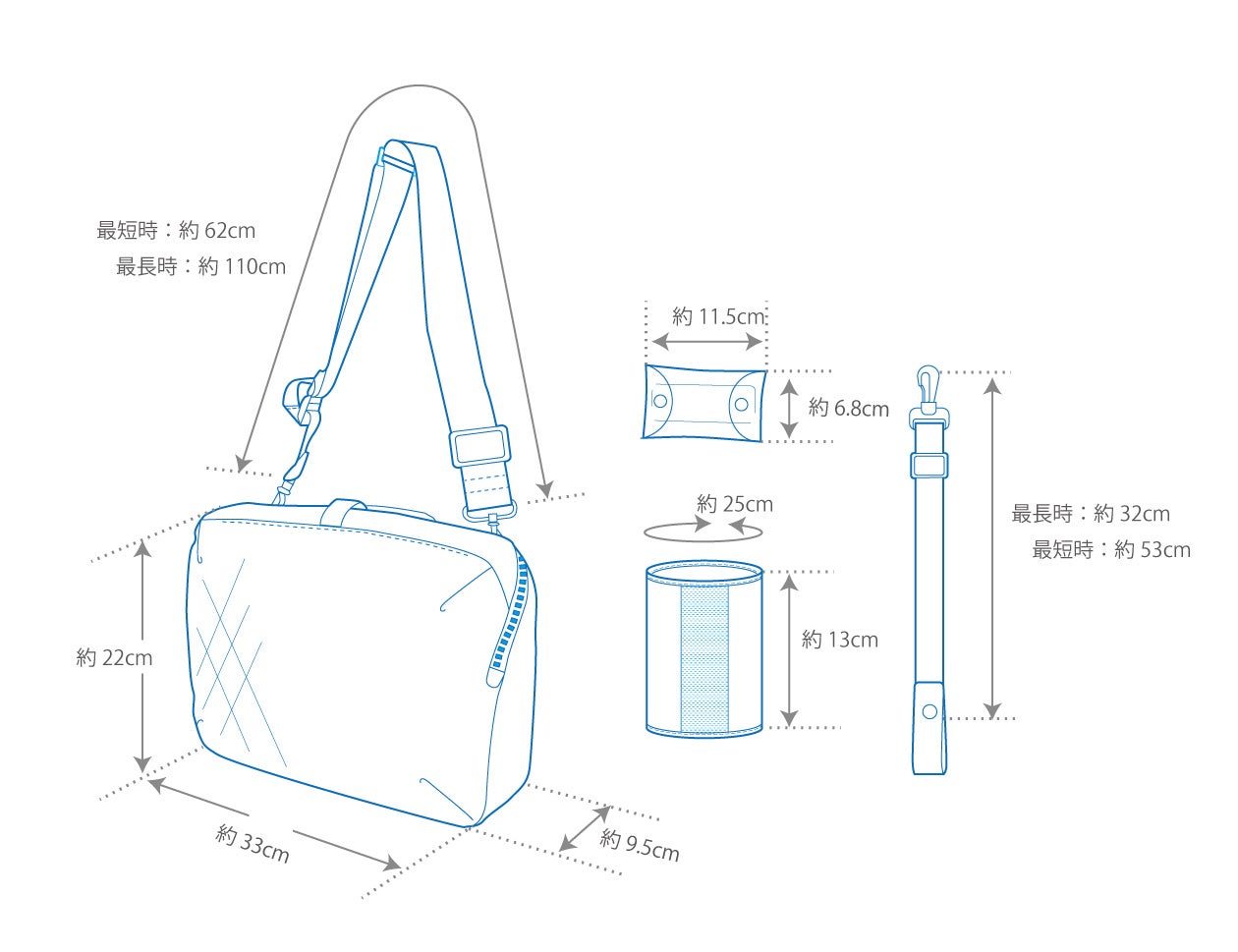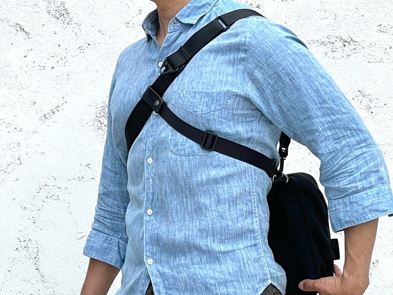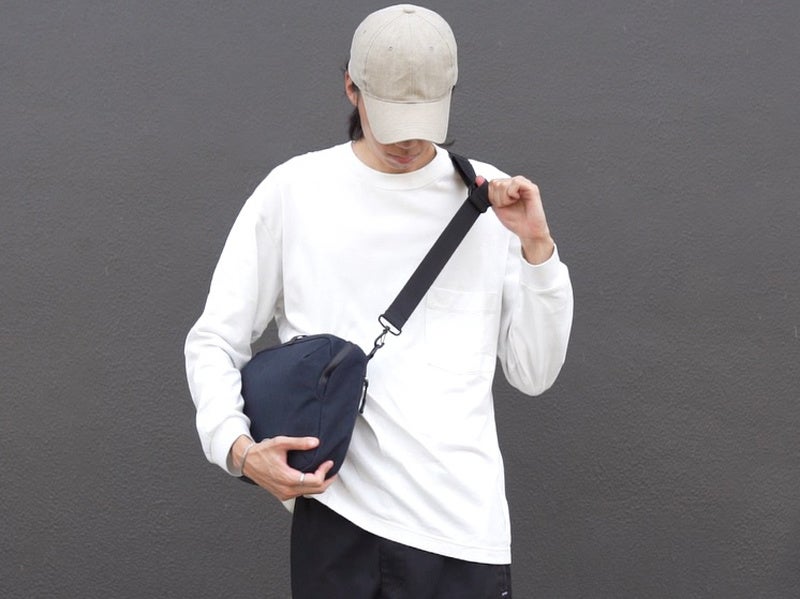 ループに親指を差し込んで上下させることで、素早くストラップの全長を伸縮できるギミック「サムスライダー」を採用。TPOに合わせ、縮めて体にタイトに纏うボディバッグスタイルにも、伸ばしてショルダーバッグスタイルにも変形可能です。