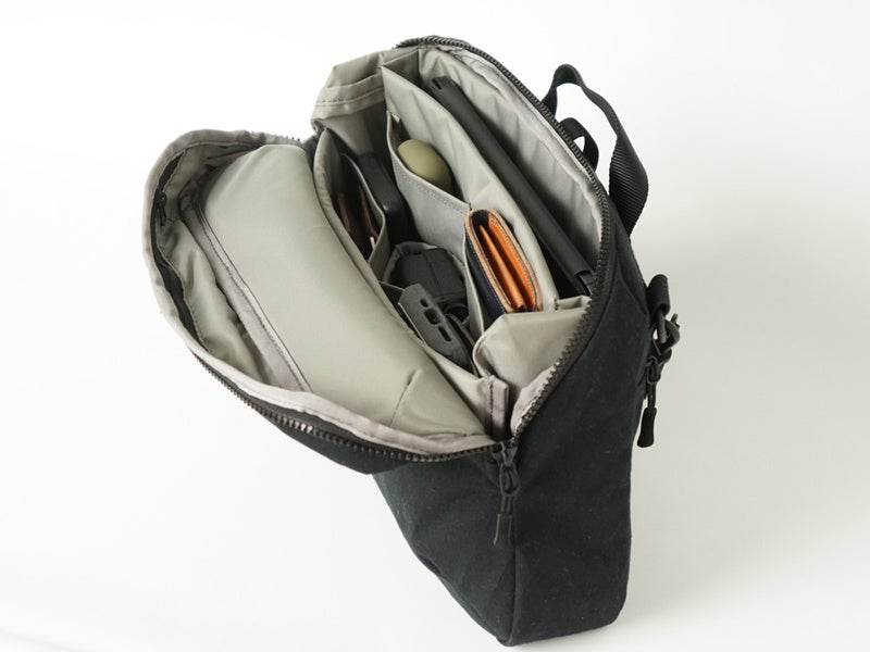 そこでドリフトではバランスを考え、財布やスマートフォン、キーケース、小物などを入れることを想定した専用ポケットと、ユーザー自身で分割してサイズを変更できる収納スペースとを用意し、デッドスペースがほとんど発生しない仕組みにしました。