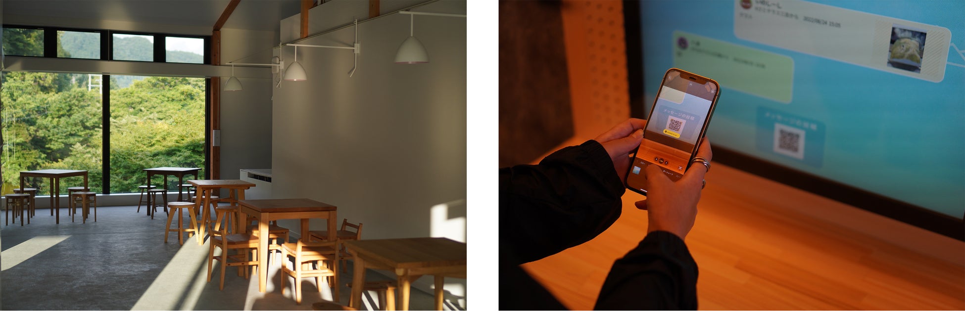 ▲(左)Wi-Fi完備の飲食スペース / (右)情報交換ができるデジタルサイネージ掲示板