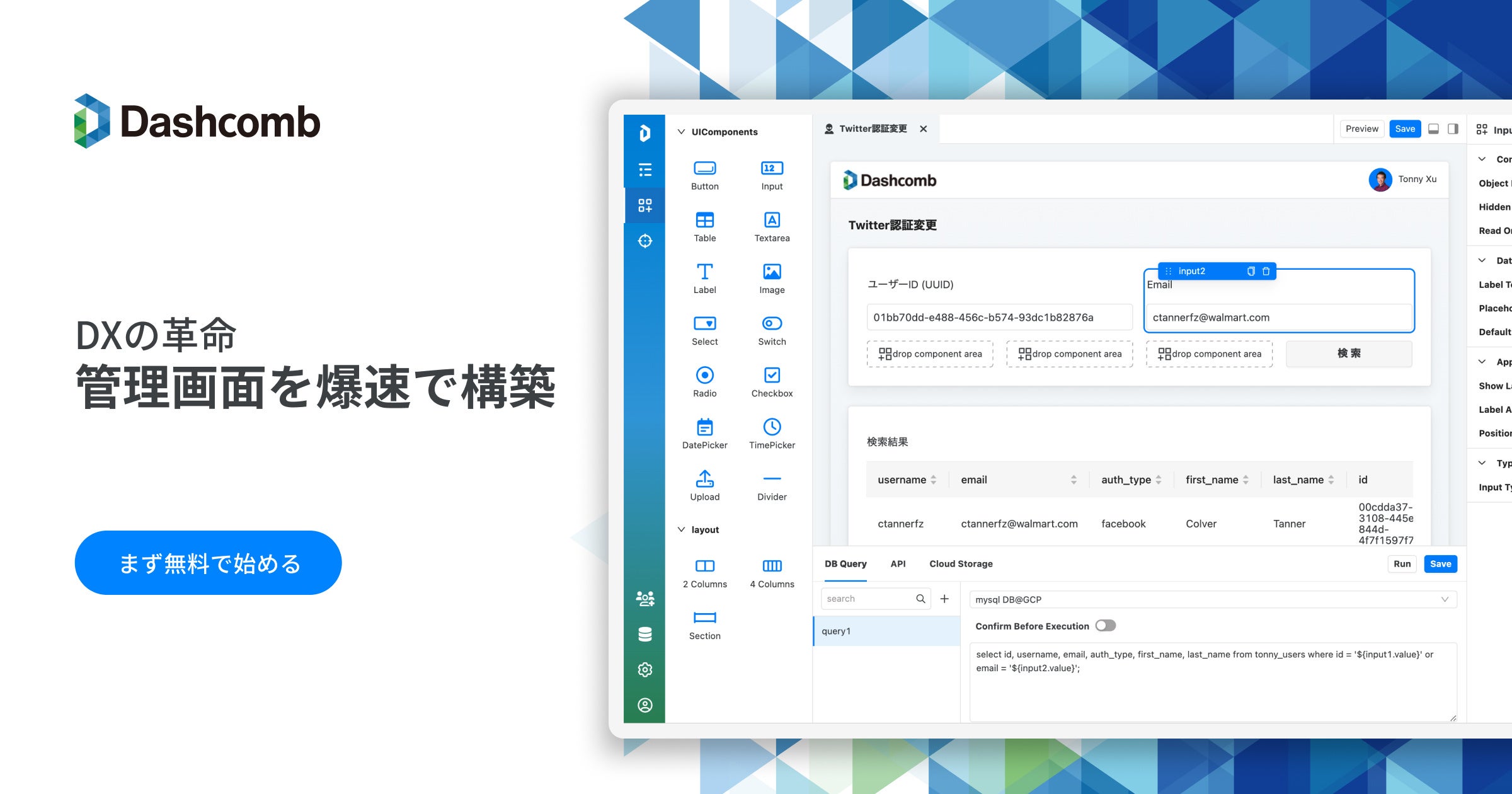 管理画面をローコードで開発できるSaaSサービス「Dashcomb」の提供を開始