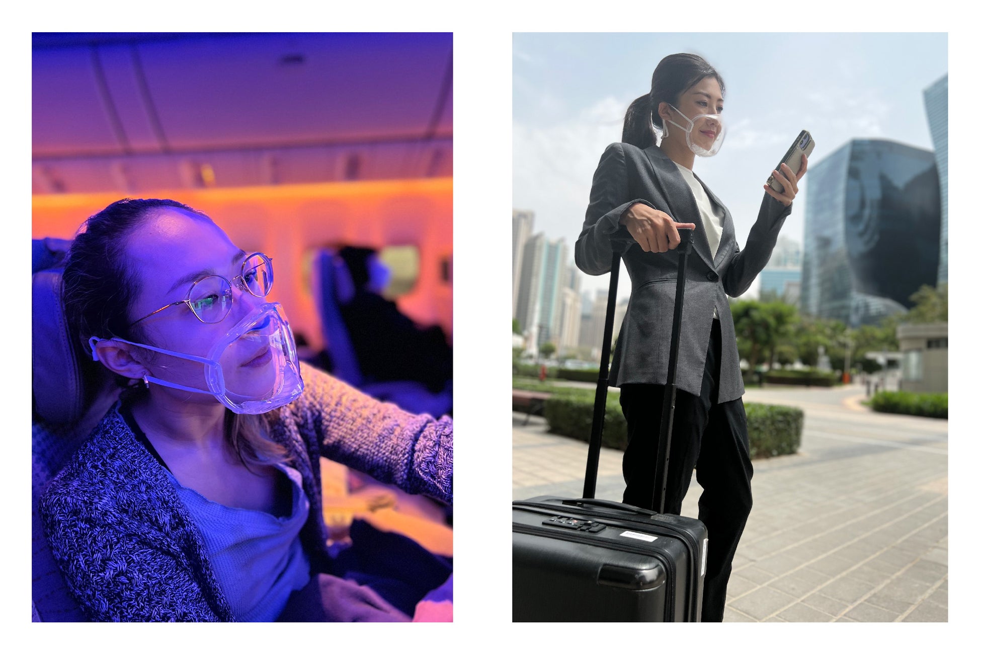 完全に透明なので、どんな洋服やアクセサリーにも合います。最高の状態で見られたい、そして安全でありたいという社交の場に最適。