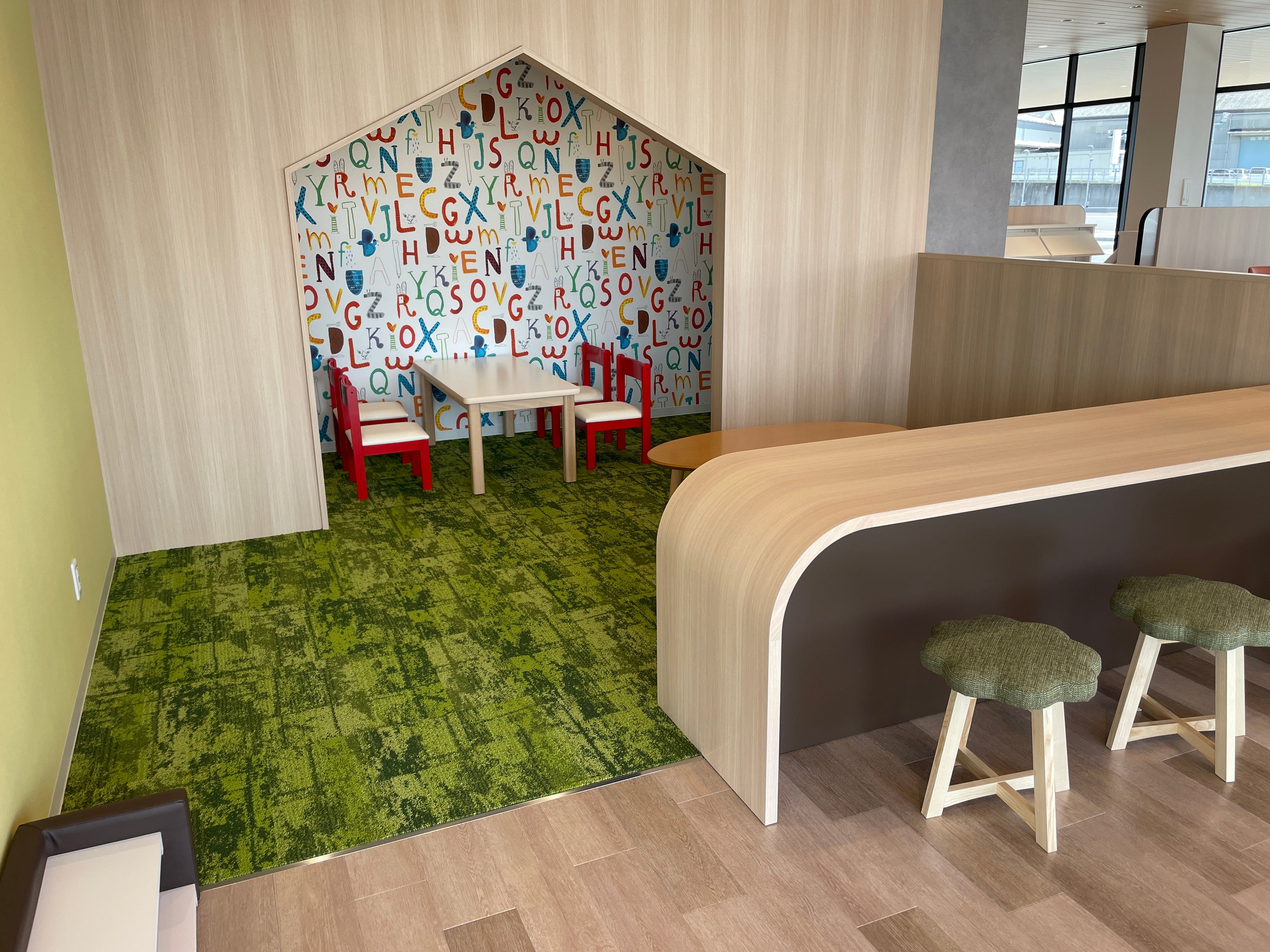 親御様が安心できるよう、商談スペースからも近い位置にキッズスペースを用意しておりますので、お子様を遊ばせながら、お車選びをいただくことも可能です。