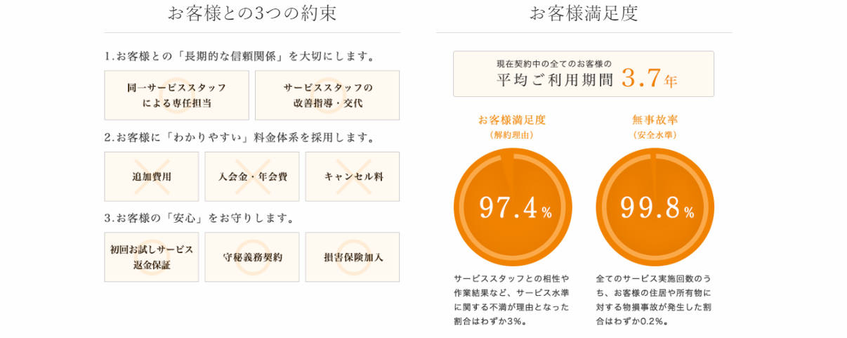 Sランクを含む契約社員は、毎週決まった曜日・時間に担当のお客様のご自宅に訪問し、お客様ごとに決められたサービスを行なっています。選考基準は、チェック項目が100以上で、採用率が5%以下という厳しい水準となっています。これは、今回採用のサービススタッフはオフィスでなくお客様のご自宅へ直行直帰すること、また富裕層向けであり、時として、お客様の不在時にご自宅の鍵をお預かりしてサービスを行わせていただくという特性上、厳しくならざるを得なくなった結果です。なお、契約社員は本人の希望する勤務時間に応じて3つの形態に分けられており、Sランク(月収40万円)Aランク(月収30万円)、Bランク(月収25万円)となっています。