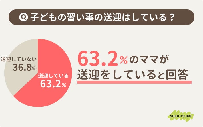 スクスクのアンケート調査の結果では、63.2%の保護者が「習い事の送迎をしている」と回答しています。
