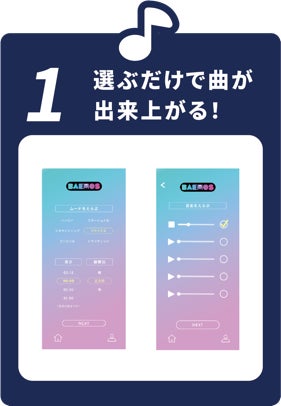 ムードを選ぶだけで、自動でオリジナル音楽が出来上がる