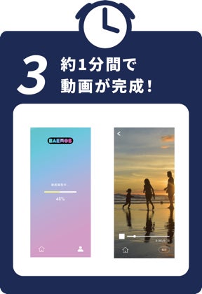 「BAEMOS」はたった3つのステップで、約1分間の所要時間でエモーショナルな動画を作成することができます。