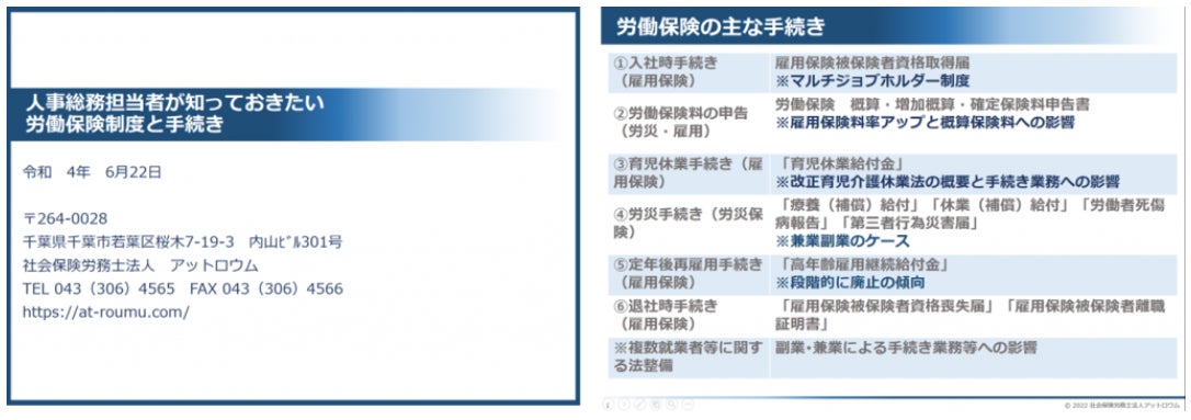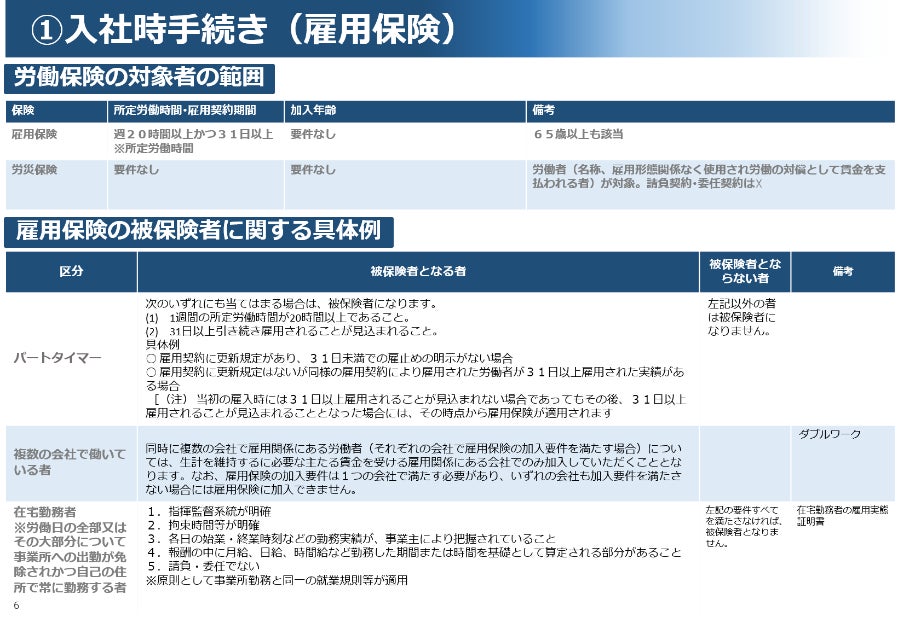 従業員の採用から退職までの間に発生する、よくある労働保険(労災・雇用)手続きを中心に、実務上のポイントを実務の流れにそって説明しました。